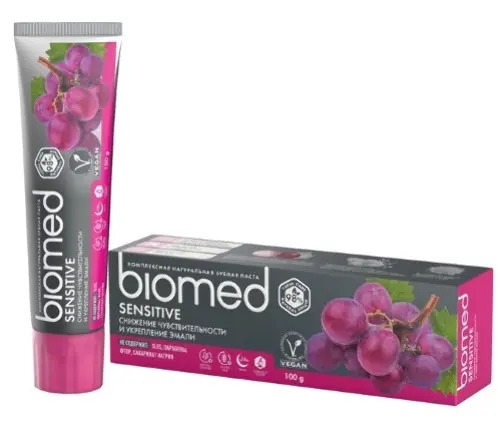 Продукты Biomed состоят из 98-99% натуральных ингредиентов и обеспечивают безопасный и эффективный уход за полостью рта для всей семьи. BIOMED SENSITIVE ЗУБНАЯ ПАСТА Консистенция - пастообразная текст... Показать описаниеура Цвет - бледно-розовый Специальные особенности: Не содержит: SLES, парабены, ФТОР, синтетические ароматизаторы и красители Восстанавливающая зубная паста БИОМЕД СЕНСИТИВ с гидроксиапатитом кальция для укрепления эмали и снижения чувствительности зубов.