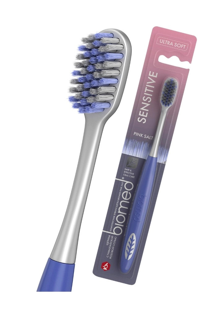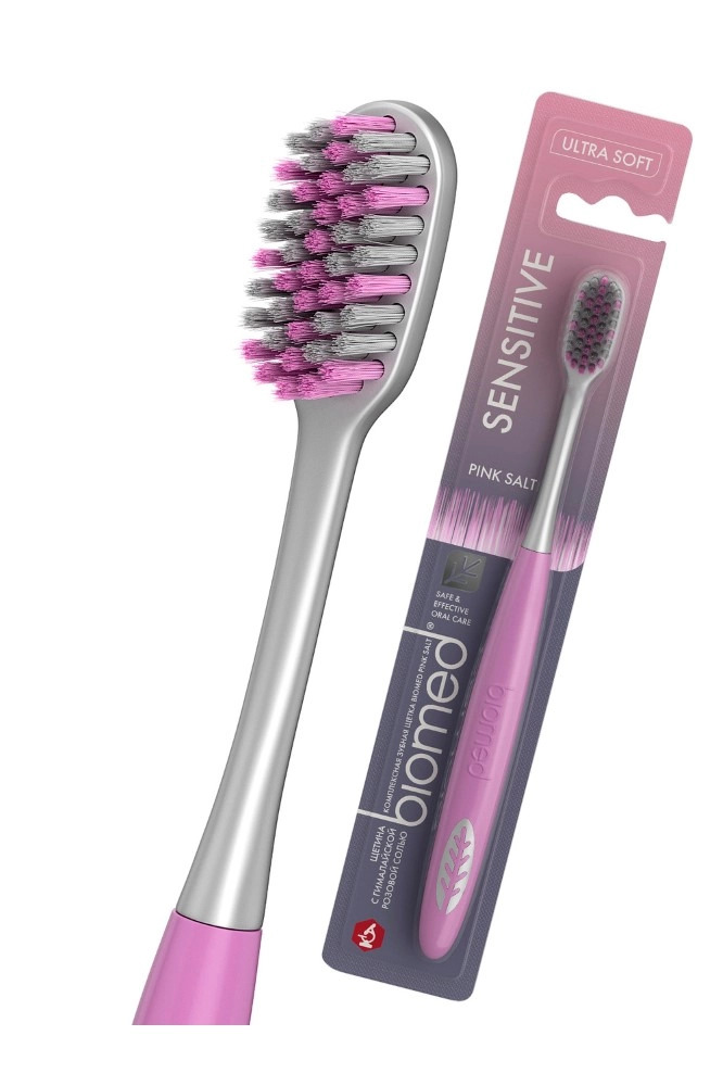 BIOMED PINK SALT ЗУБНАЯ ЩЕТКА КОМПЛЕКСНАЯ МЯГКАЯ. Внешний вид: Цвет и форма ручки: розово-серая, сине-серая округлая. Цвет и жесткость щетины: розово-серая, сине-серая, мягкая жесткость. Зубная щетка ... Показать описаниеBiomed Pink Soft с мягкой уплотненной щеткой разработана для бережной чистки чувствительных зубов и десен. Напыление из розовой гималайской соли на ее щетинках нейтрализует кислый pH полости рта, снижая риск развития кариеса. Богатые минералами и микроэлементами розовая гималайская соль оказывает антибактериальное действие на эмаль и оздоравливает десны. Biomed Pink Soft бережно очищает налет и бережно массирует кожу, создавая приятное ощущение чистоты во рту. Результат: Клинически доказано: Очищающий эффект с первого применения.