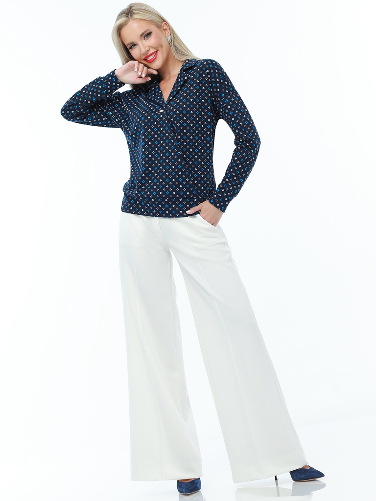 Классическая блузка с отложным воротничком и застежкой на пуговицах, казалось бы, классика, но и она может стать свежей и современной благодаря дизайнерским находкам. Интересный выбор принтов и модные... Показать описание рукава, собранные патами, придают классике новое звучание. Будьте на вершине трендов каждый день! Длина: 44 размер - 77 см 46 размер - 78 см 48 размер - 79 см 50 размер - 80 см 52 размер - 81 см 54 размер - 82 см 56 размер - 83 см Бережная стирка при 30 градусах Цвет изделия на фотографии может отличаться от фактического товара, что связано с искажением цветопередачи монитором, настройками фотоаппаратуры и прочими факторами Пропорции 88 - 64 - 94 см Рост 172 см Размер 44