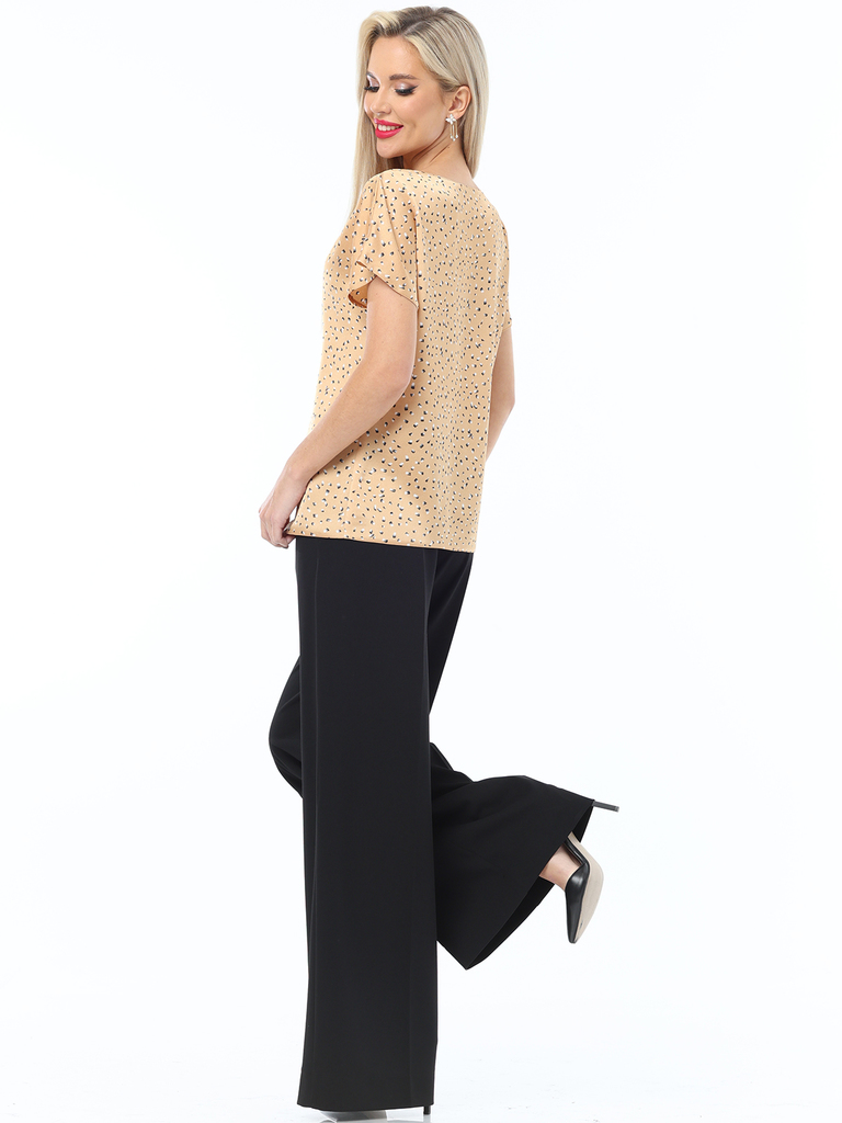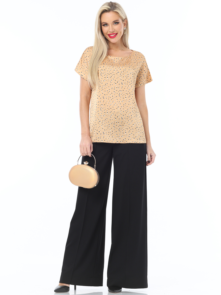 Блузка изготовлена из легкой блузочной ткани, идеальной для демисезонного периода, обеспечивая комфорт и элегантность в носке. Цвет блузки - классический песочный, который всегда в моде и легко сочета... Показать описаниеется с различными элементами гардероба, позволяя создавать разнообразные образы. Блузка не имеет застежки, что делает ее более удобной и практичной в использовании. Вырез горловины округлый, что придает блузке нежность и женственность, а короткие рукава делают ее подходящей для повседневного ношения. Уход за этой блузкой прост и удобен: достаточно провести бережную стирку при 30 градусах, чтобы она сохраняла свою первоначальную красоту и форму на протяжении долгого времени. Длина: 46 размер - 60 см 48 размер - 60 см 50 размер - 61 см 52 размер - 61 см 54 размер - 62 см 56 размер - 62 см Бережная стирка при 30 градусах Цвет изделия на фотографии может отличаться от фактического товара, что связано с искажением цветопередачи монитором, настройками фотоаппаратуры и прочими факторами Пропорции 88 - 64 - 94 см Рост 172 см Размер 44