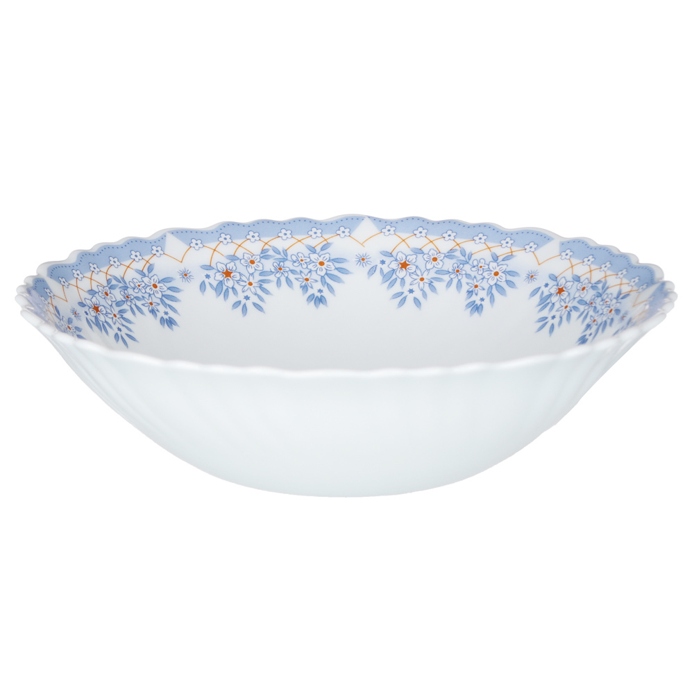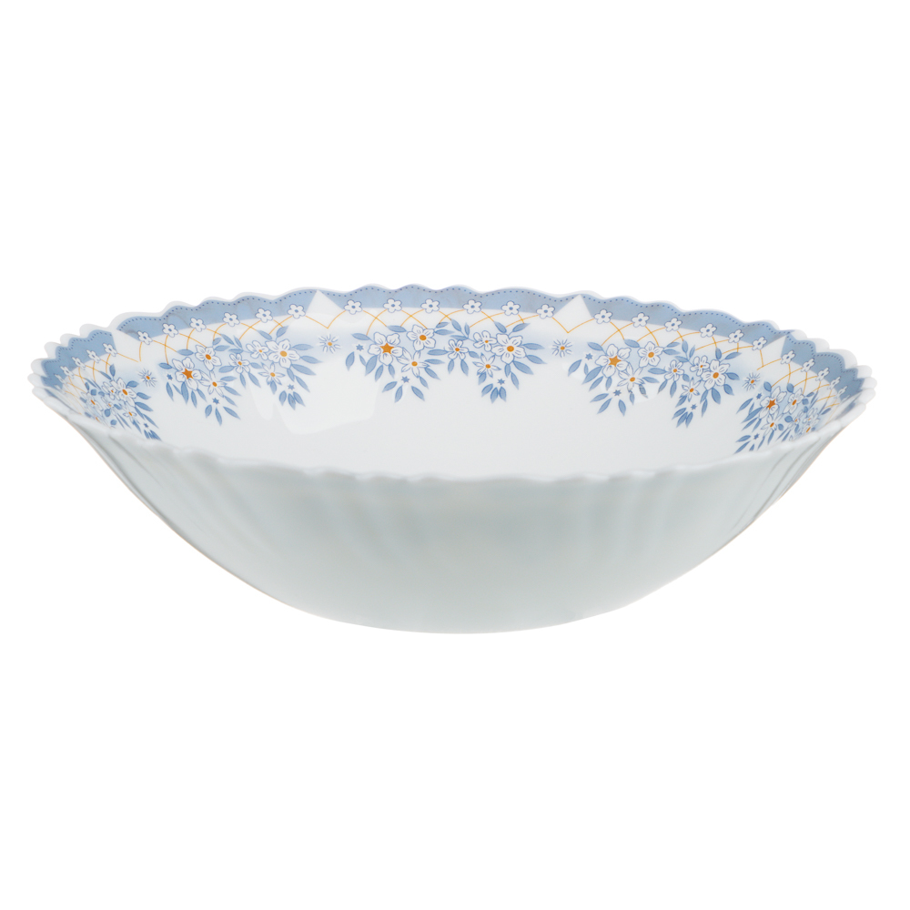 Салатник из опалового стекла 19 см MILLIMI «Асиано» – это эстетичная посуда из высокопрочного стекла для подачи салатов, бутербродов и других закусок на праздничный или повседневный стол. Белая посуда... Показать описание с цветочным рисунком впишется в любой стиль сервировки, будет выразительно и гармонично смотреться на фоне белой или цветной скатерти. Изделие устойчиво к образованию сколов и царапин, легко моется, не темнеет с течением времени, поэтому прослужит долго.