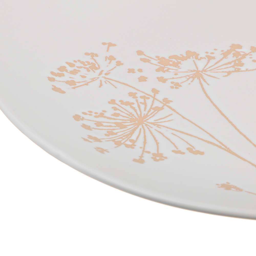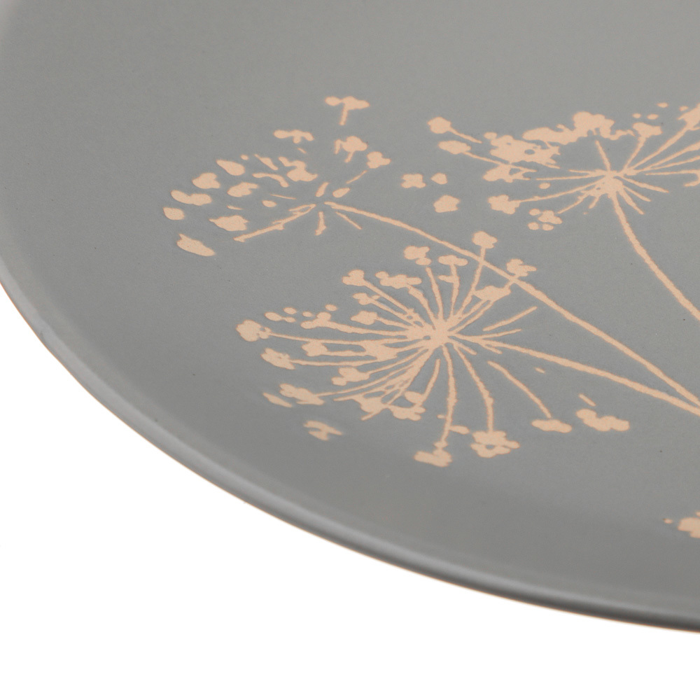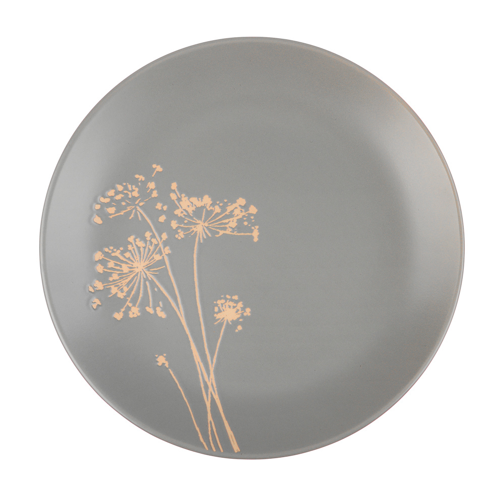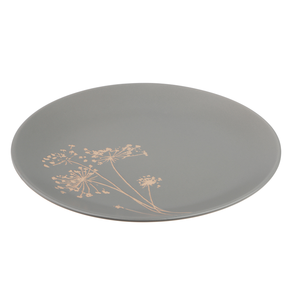 Подстановочная тарелка MILLIMI «Амми», диаметр 26,5 см – это стильная керамическая посуда для сервировки праздничного стола. Идеально подходит для использования в качестве базовой тарелки под индивиду... Показать описаниеальный комплект посуды для каждого гостя, поможет обозначить посадочное место, защитит скатерть и поверхность стола от взаимодействия с горячей посудой, а также придаст особой торжественности сервировке. Может использоваться в качестве тарелки под фрукты, гарниры или десерты для подачи на общий стол. Элегантный матовый дизайн, сдержанный серый цвет и лаконичный благородный цветочный принт органично вписывается в любой стиль сервировки. Тарелка легко моется, устойчива к образованию сколов и царапин от столовых приборов.