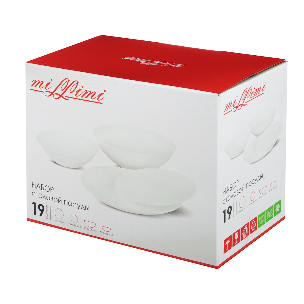 MILLIMI Бьянко Плюс Набор столовой посуды 19 пр., опаловое стеклоВопросы по товару