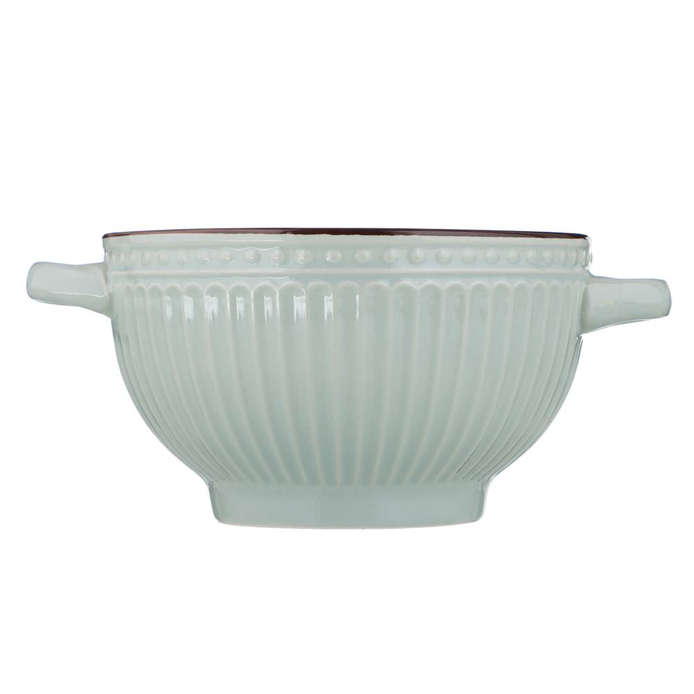 Бульонница с двумя ручками объемом 600 мл из керамики – практичная и привлекательная посуда для повседневного использования. Имеет приятный дизайн, стильно смотрится на столе. Наличие ручек позволяет ... Показать описаниепить бульон, не используя ложку и не обжигая руки. Подходит для бульонов, супов и гуляшей. Дизайн в ассортименте.