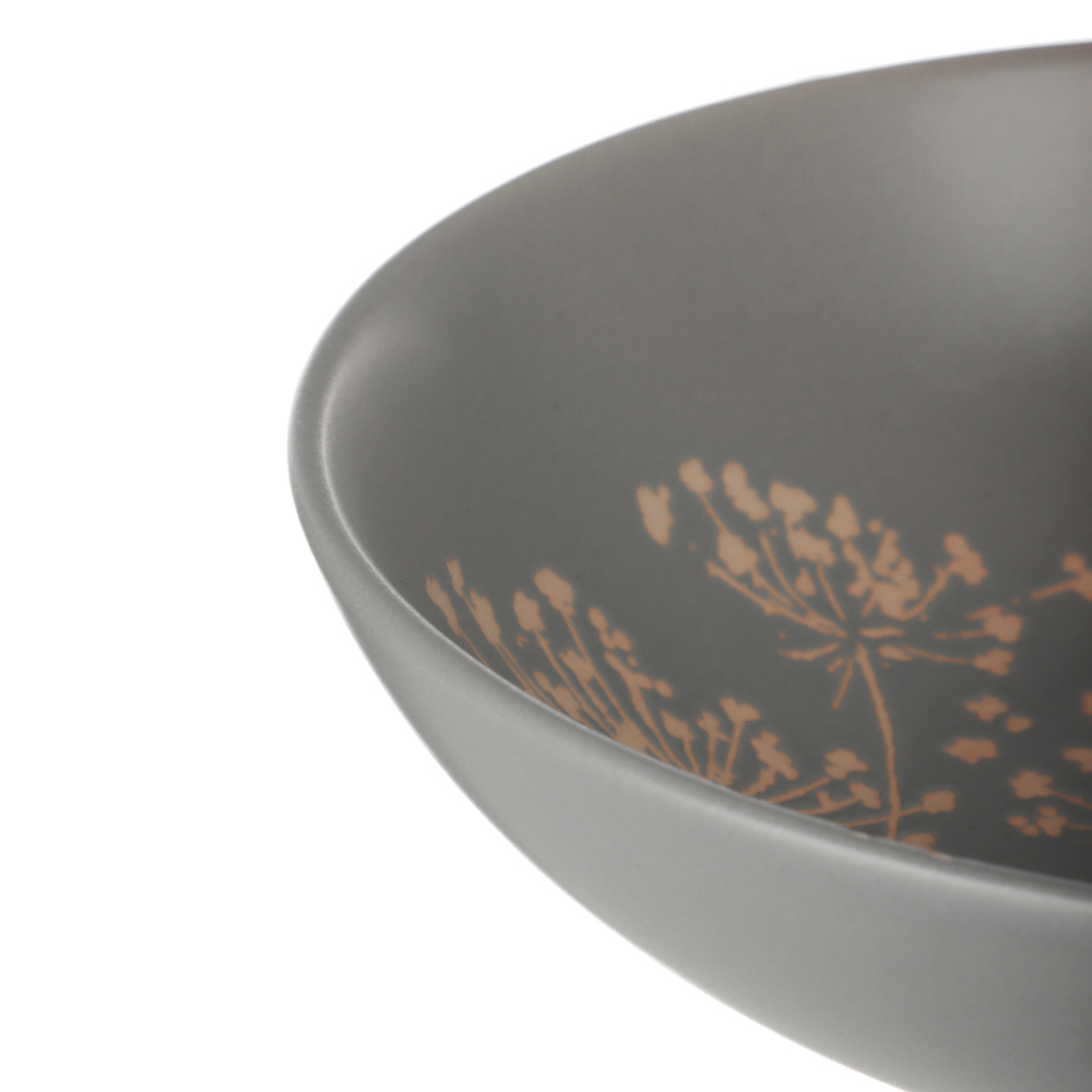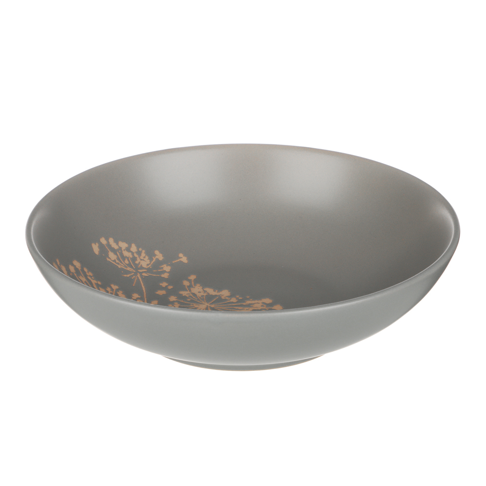 Салатник MILLIMI «Амми», размер 20х5 см, объем 700 мл, серый – это стильная и функциональная керамическая посуда для повседневной и праздничной сервировки. Имеет сдержанный благородный дизайн в матово... Показать описанием сером цвете с нежным цветочным принтом. Гармонично сочетается с белой и цветной посудой из разных коллекций, позволяя создать свой уникальный стиль сервировки. Салатник удобен для подачи салатов, закусок, а также десертов. Посуду можно использовать в микроволновке и мыть в посудомоечной машине. Прочная глазурь устойчива к образованию царапин при аккуратном использовании.