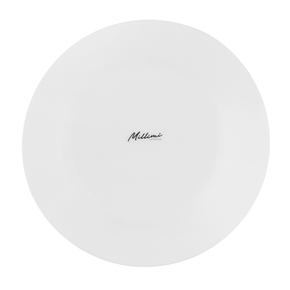 Тарелка подстановочная MILLIMI Амми – стильное и функциональное решение для элегантной сервировки стола. Диаметр 26,5 см идеально подходит для использования в качестве базовой тарелки, на которую можн... Показать описаниео ставить основные блюда, салатники или суповые чашки. Изготовленная из высококачественной керамики, тарелка отличается прочностью, долговечностью и экологичностью. Гладкая матовая поверхность белого цвета придает посуде современный и универсальный вид, который гармонично впишется в любую сервировку – от повседневных обедов до праздничных ужинов. Легко моется в посудомоечной машине.