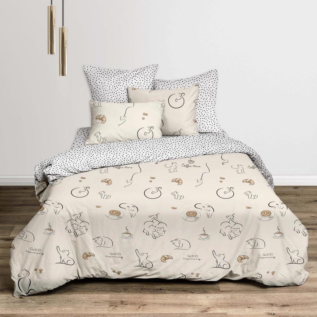 *КПБ евро люкс перкаль "Fine Line" с простынью на резинке (50х70) рис. 50383-4/50384-1 Египетские коты н/у