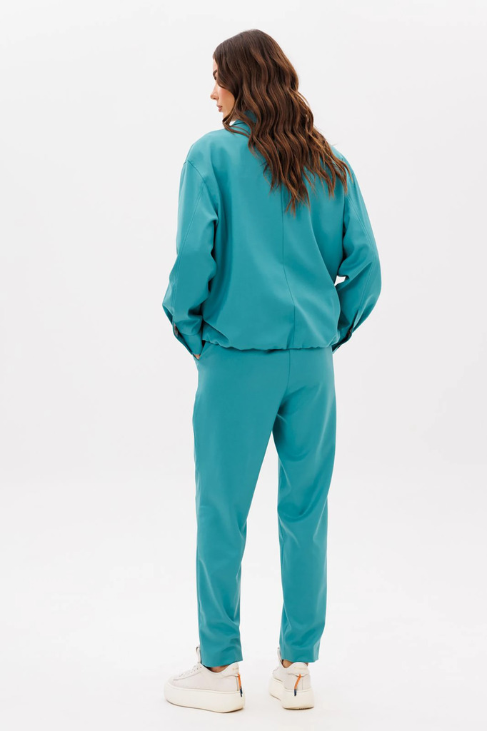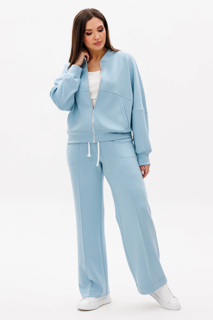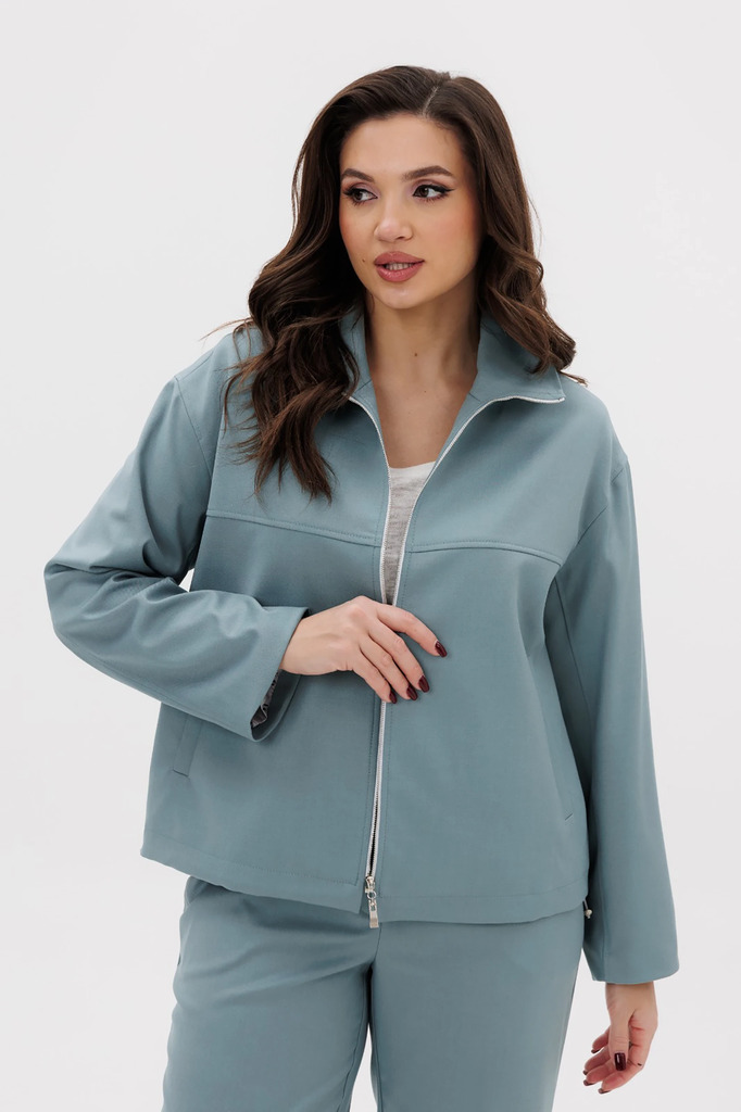 Лёгкость, непринуждённость, свежесть цвета и комфорт - пожалуй, основные аргументы при выборе весеннего брючного костюма. Не отказывайте себе в удовольствии экспериментировать с моделью и цветом! Кост... Показать описаниеюм в сите кэжуал, невероятно удобный, в котором классический пиджак уступил место мега-комфортному пиджаку-куртке.Свободный покрой с заниженной линией плеча, рукав расширенный в области оката, втачной воротник и центральная застёжка на тесьму-молнию. Полочка с отрезной кокеткой и прорезным карманом с листочкой. Спинка с отрезной кокеткой и средним швом. Рукав двухшовный. По низу изделия - кулиса с регулирующейся эластичной тесьмой.Брюки классические, свободные, с наклонными боковыми карманами, мягкими складками-защипами по передним половинкам и разрезом в шаговом шве, застёгивающимся на молнию.Длина жакета около 54 см, длина рукава с плечом около 74 см.Длина брюк около 105 см. пэ 64%, вискоза 34%, спандекс 2%.