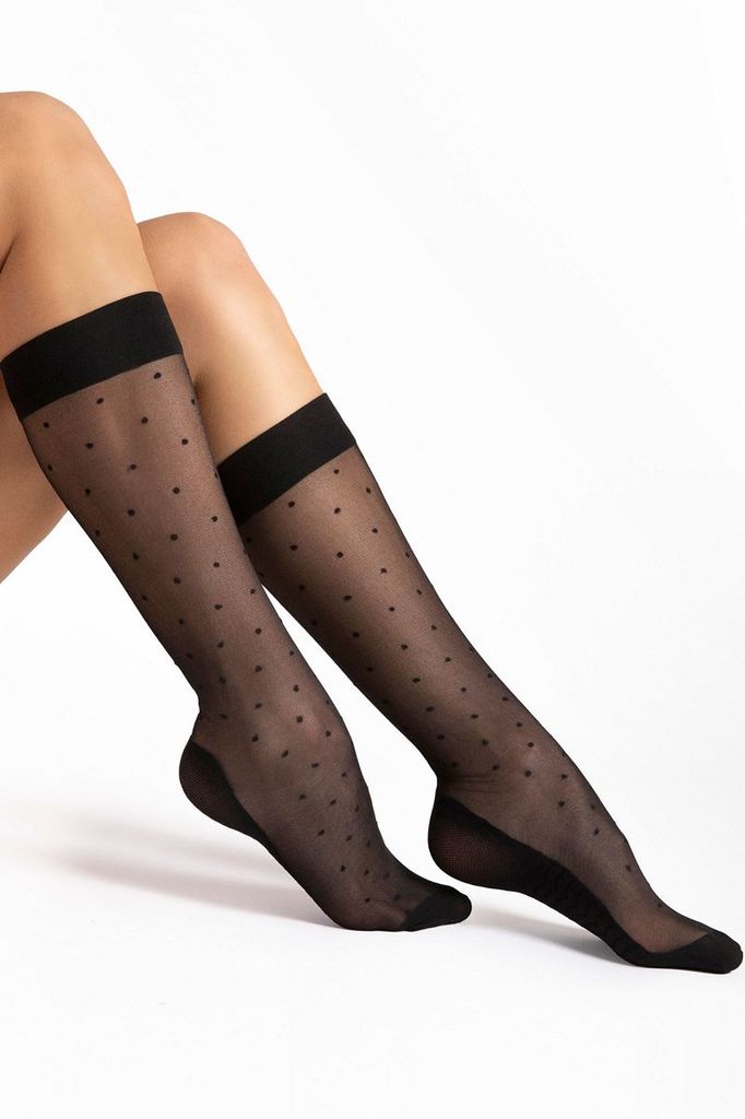 Гольфы 2111/G TRISHA 20 den от европейского производителя Fiore. Гольфы украшены горошинами. Мягкие и удобные, идеально подходят для теплых дней, и не только!