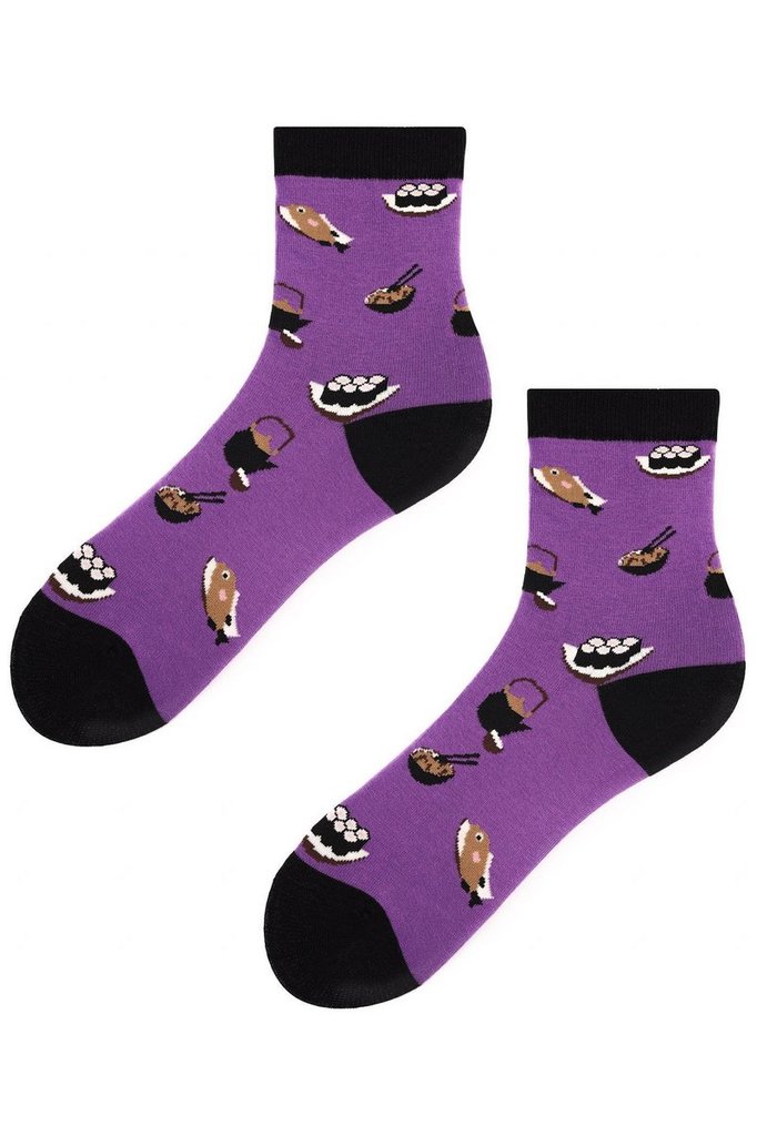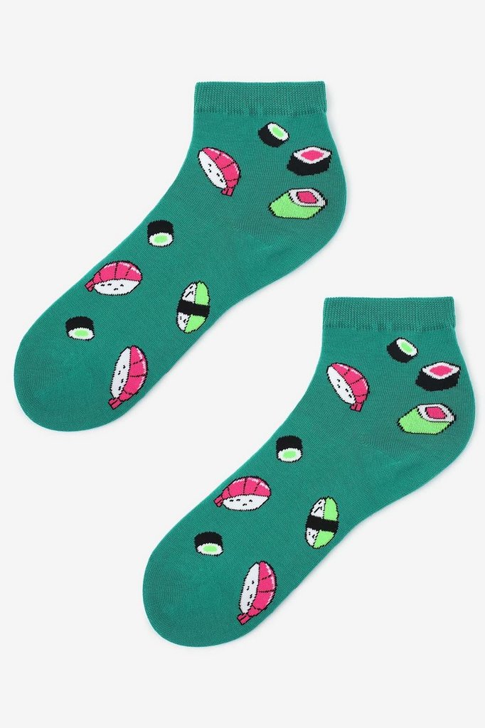 Женские носки с различными видами суши. Изготовлены из натурального хлопка высшего качества. Плоский и мягкий шов обеспечит комфорт при ношении.
