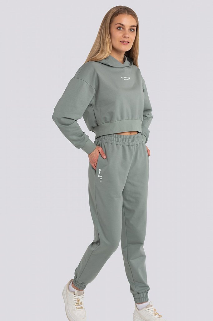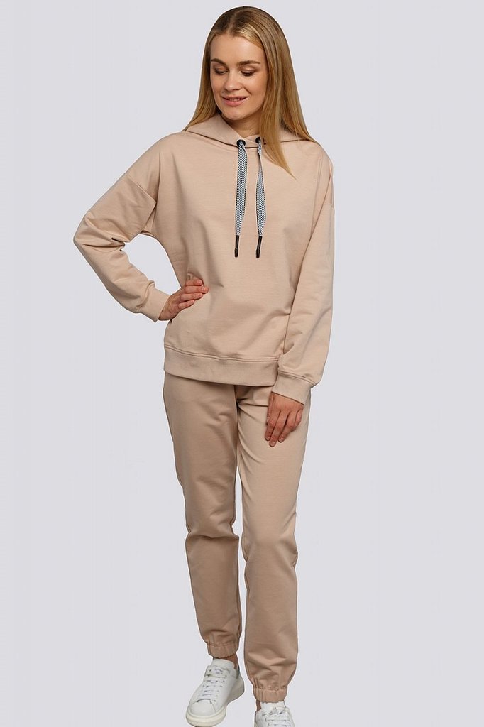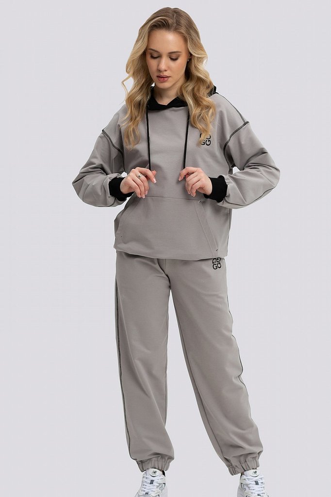 Новинки сезона 2023 представляют собой не только костюмы для офиса, но и стильные молодежные модели. Одежда в стиле оверсайз удобна во всех проявлениях. Свободное худи не обтягивает фигуру, укороченна... Показать описаниея длина позволяет продемонстрировать красивые формы. Брюки-джоггеры умеренного объема, посадка – на талии, пояс с резинкой, снизу манжет на резинке. Кроме того, костюм выдержан в спортивном стиле, что позволяет носить его в различных обстоятельствах. Он уместен в кафе, на прогулке в парке или на спортивной площадке. Модель очень сдержанна по дизайну – лишь лаконичный фирменный логотип. Состав трикотажа: 75% хлопок, 20% полиэстер, 5% спандекс.