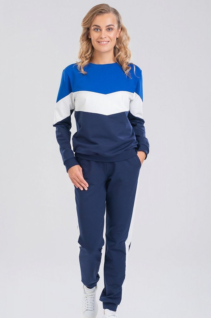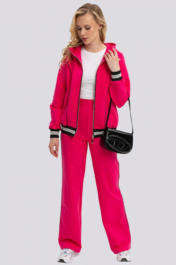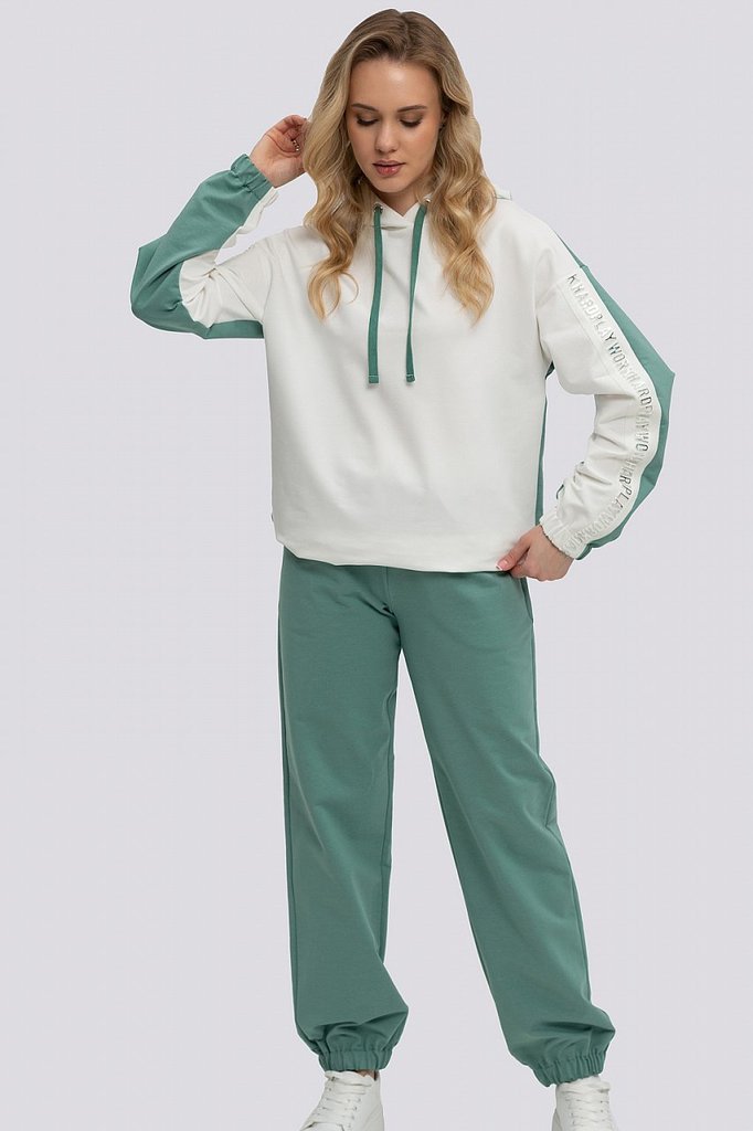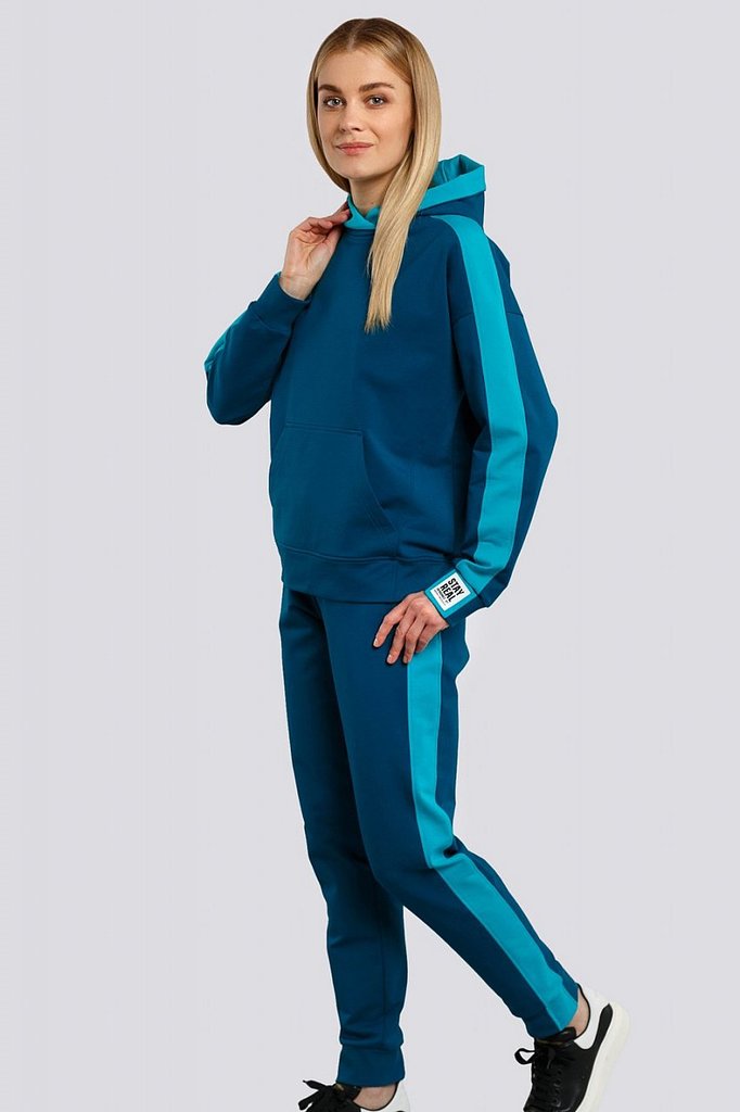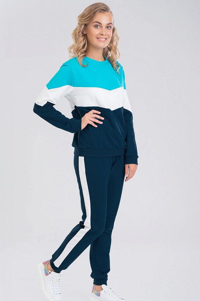 Заниматься спортом, гулять, общаться с друзьями — эти действия должны присутствовать в жизни каждой активной леди, поэтому модный трикотажный костюм в спортивном направлении обязан присутствовать в ва... Показать описаниешем гардеробе безоговорочно. Костюм состоит из олимпийки и брюк. Яркость костюму придает оригинальное сочетание разных цветов и контрастной тесьмы. Олимпийка с капюшоном, центральная застежка на молнию. Спереди карманы с листочкой. Низ олимпийки и низ рукава обработаны поясом и манжетами. Брюки свободные, пояс брюк на резинке, низ обработан манжетами. Состав трикотажа: 75% хлопок, 20% полиэстер, 5% спандекс.