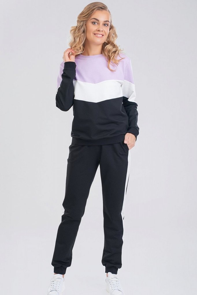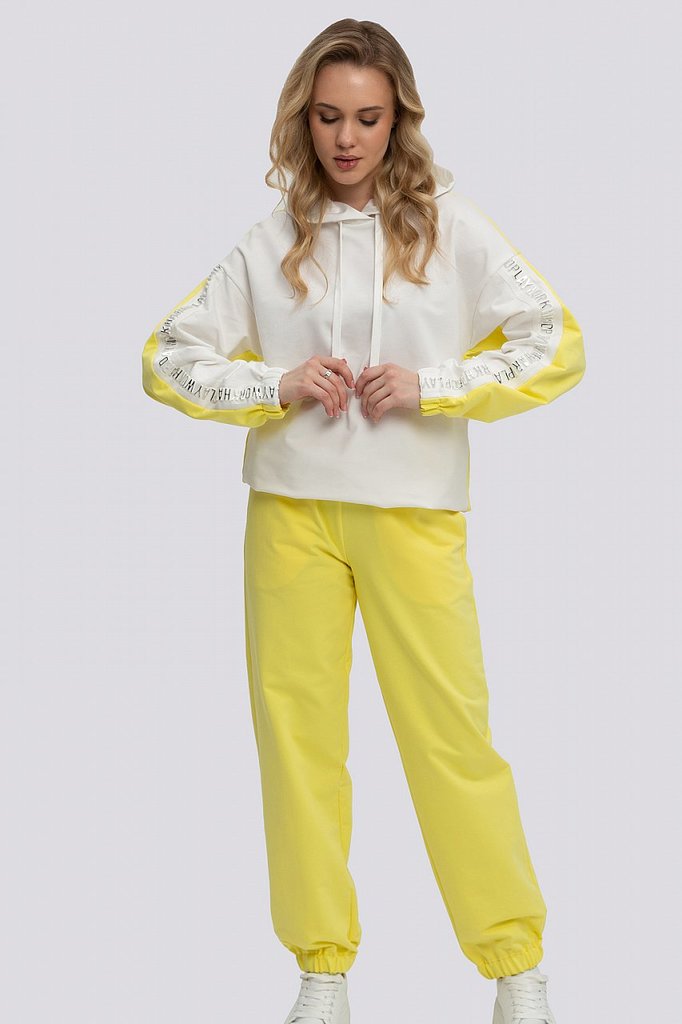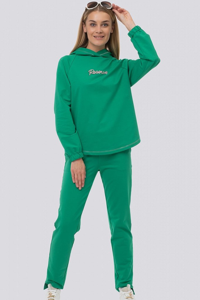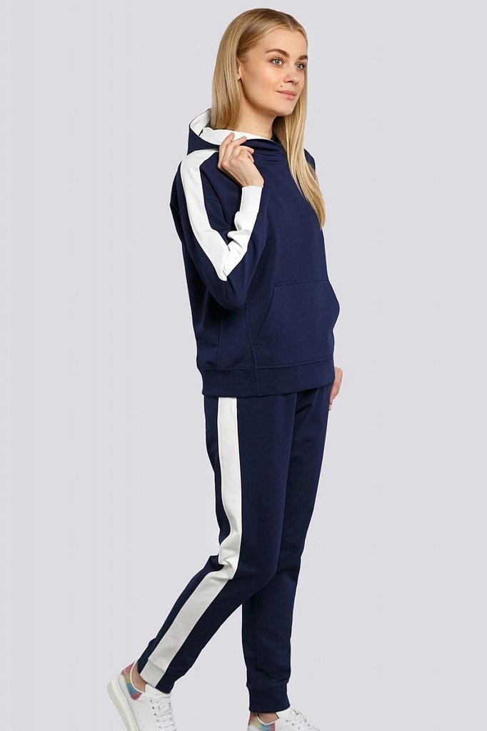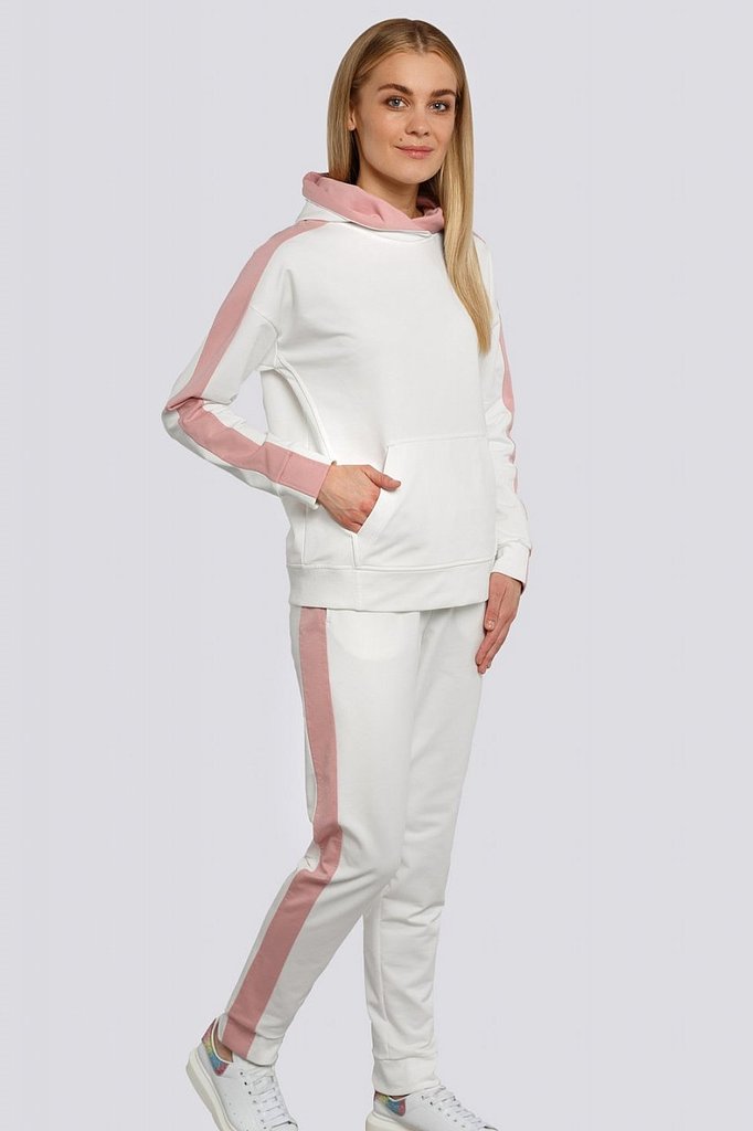 Заниматься спортом, гулять, общаться с друзьями — эти действия должны присутствовать в жизни каждой активной леди, поэтому модный трикотажный костюм в спортивном направлении обязан присутствовать в ва... Показать описаниешем гардеробе безоговорочно. Костюм состоит из олимпийки и брюк. Яркость костюму придает оригинальное сочетание разных цветов и контрастной тесьмы. Олимпийка с капюшоном, центральная застежка на молнию. Спереди карманы с листочкой. Низ олимпийки и низ рукава обработаны поясом и манжетами. Брюки свободные, пояс брюк на резинке, низ обработан манжетами. Состав трикотажа: 75% хлопок, 20% полиэстер, 5% спандекс.