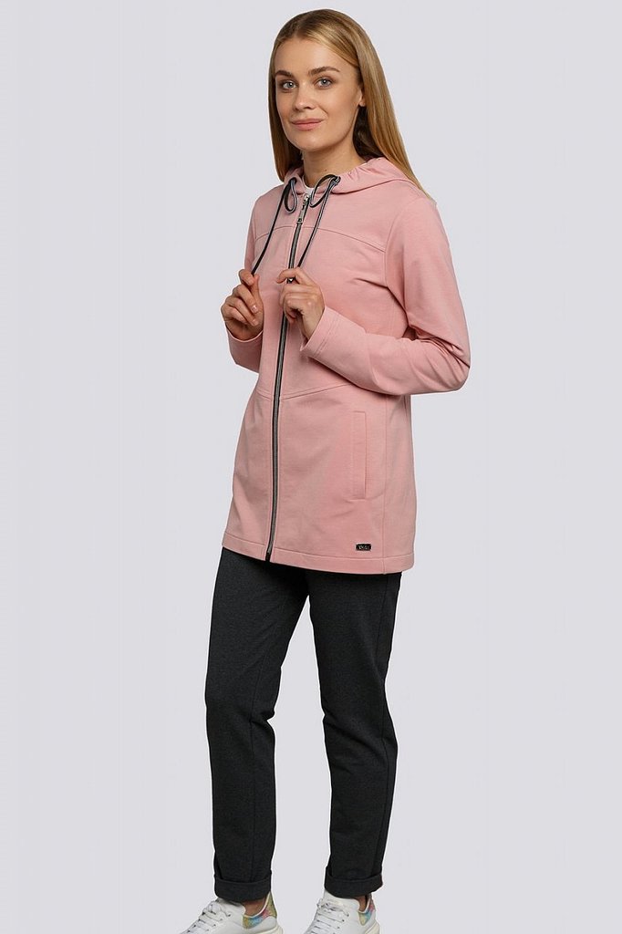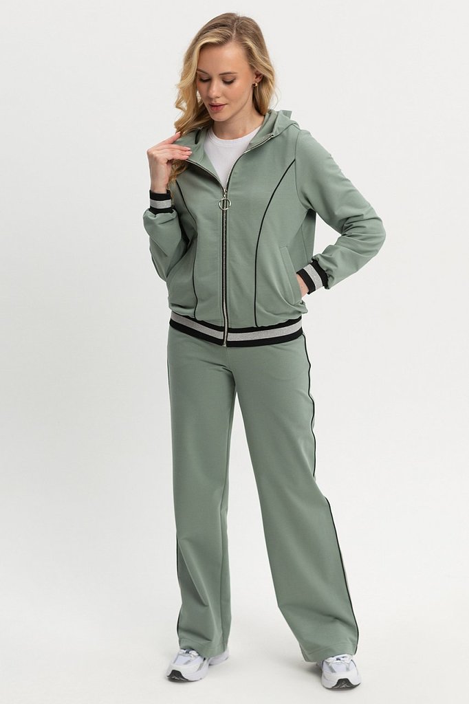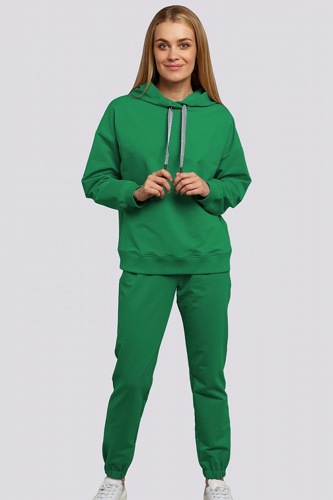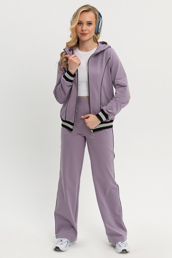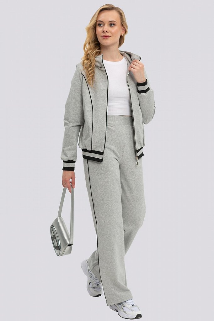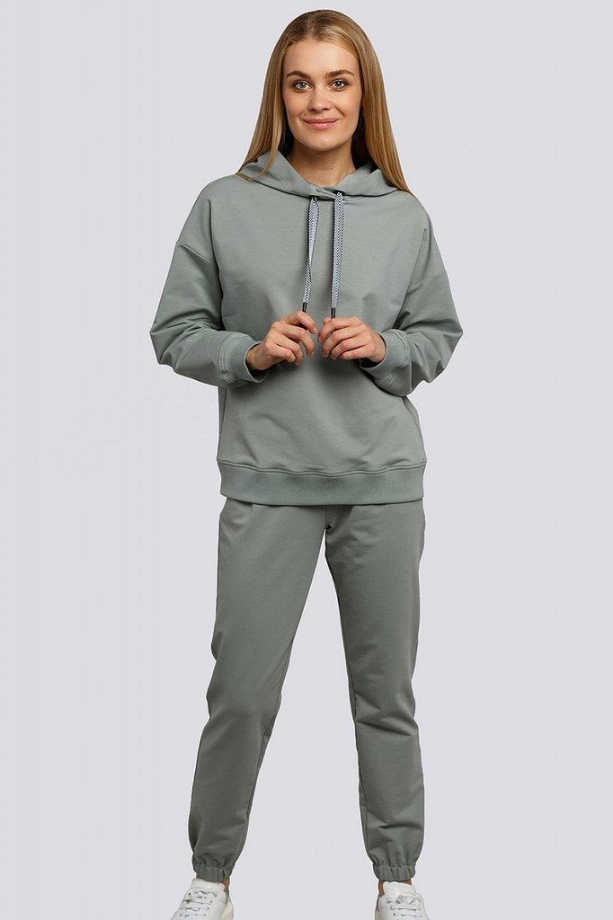 Трикотажный костюм всегда считался лидером комфортной одежды. Удлиненная олимпийка на молнии с капюшоном, длина до линии бедра, умеренного объема – о чем еще можно мечтать? Застежка на молнию, закрыту... Показать описаниею планкой. Свободные брючки с отгибающейся манжетой, объем по талии регулируется шнуром. Состав трикотажа: 75% хлопок, 20% полиэстер, 5% спандекс.