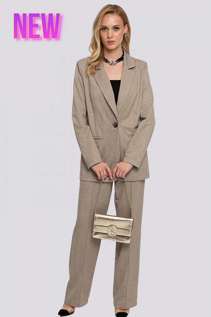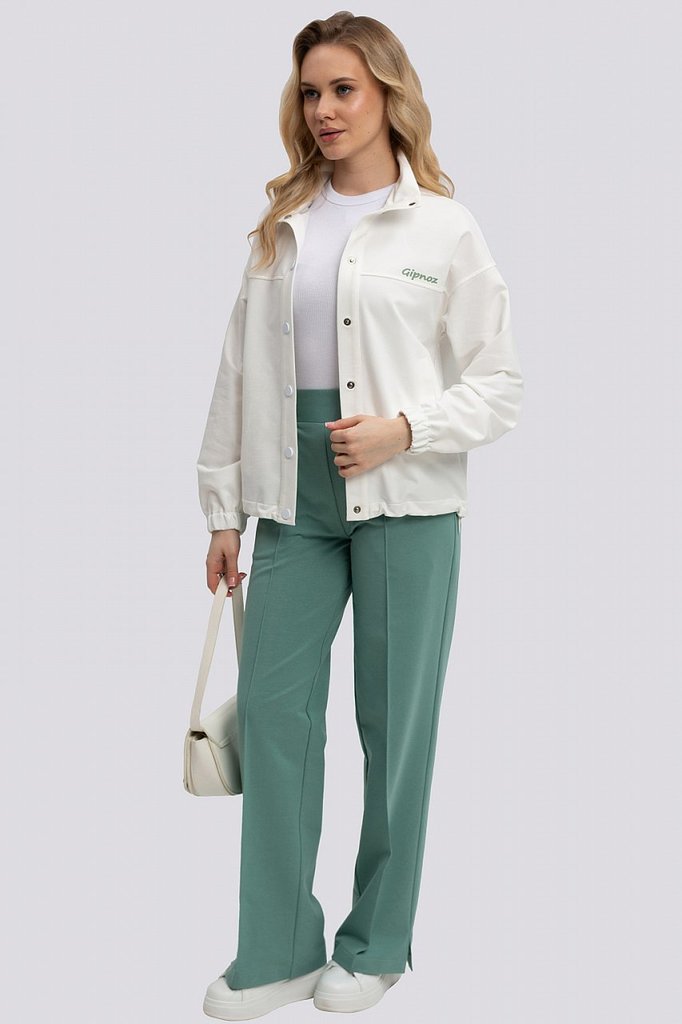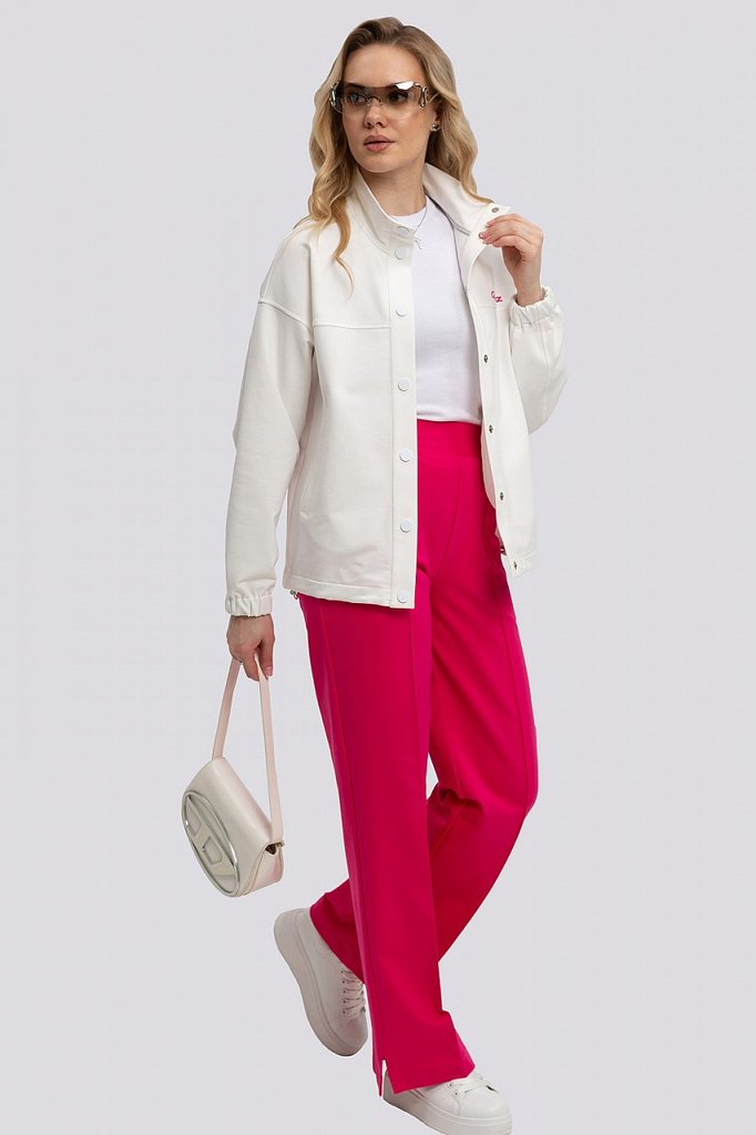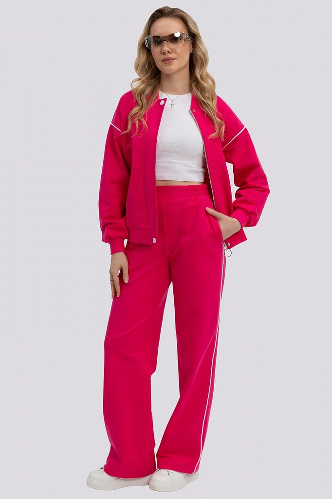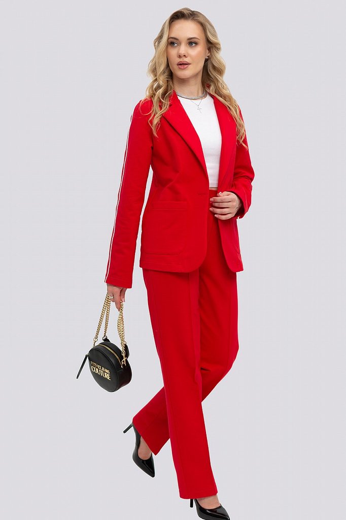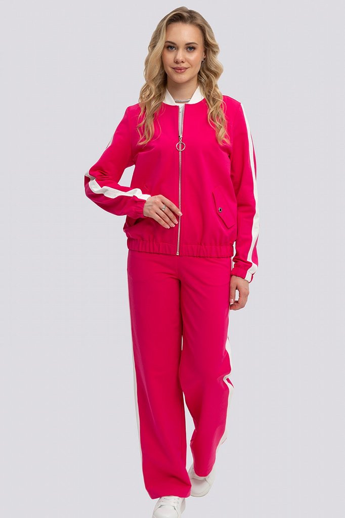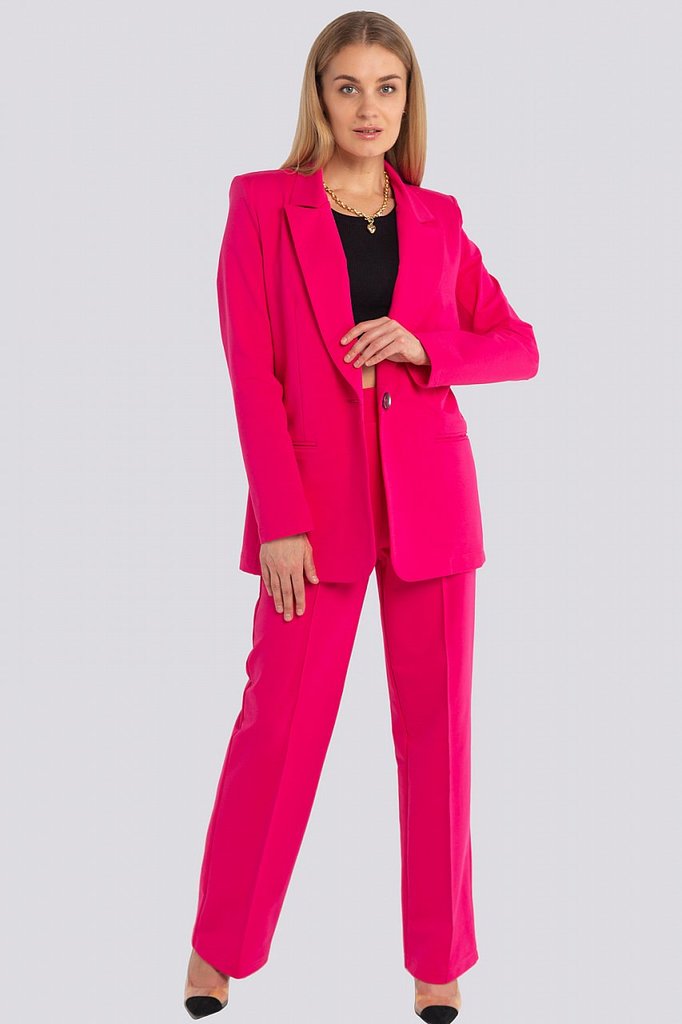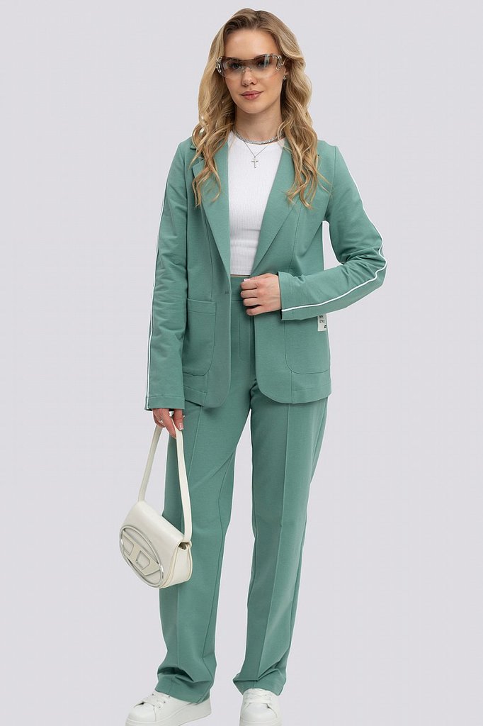Классический костюм всегда был в моде, такие костюмы подходят всем, независимо от фигуры. Их можно носить с блузками, рубашками, для того, чтобы создать строгий образ. Для повседневного ношения можно ... Показать описаниенадеть свитер или топ. Современные женщины готовы носить модный костюм с брюками по любому поводу и это правильно. Более того, женский брючный костюм входит в топ вещей, без которых представить себе актуальный женский гардероб в сезоне 2023-2024 будет немыслимо. Жакет с воротником английского типа, свободного объема, полуприлегающего силуэта. Застежка на пуговицу, элегантные карманы в рамку. Брюки широкие, стрелка застрочена, со шлевками, пояс частично с резинкой. Посадка брюк – высокая, на талии. В очередной раз пришла в моду палитра сочных оттенков – фуксия, ярко-синий, зеленая мята – наш выбор. Модель представлена из трикотажной ткани, что предоставляет максимум комфорта в носке. Ткань не мнется, не вытягивается и не выгорает. Состав трикотажа: 75% хлопок, 20% полиэстер, 5% спандекс.