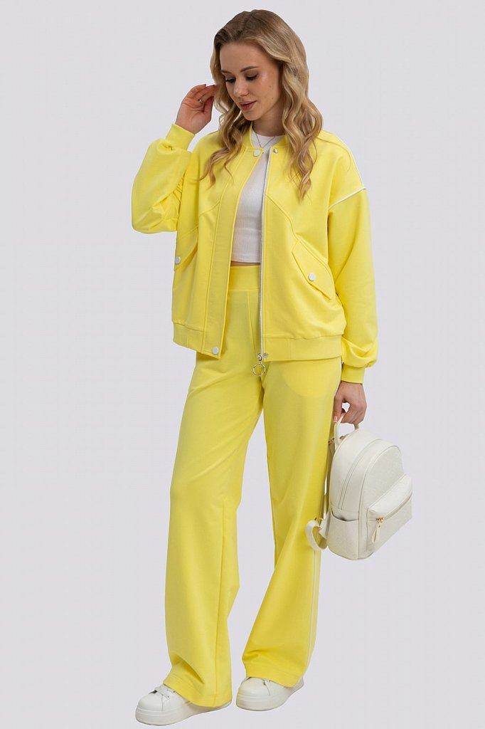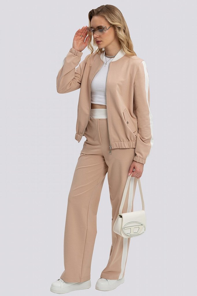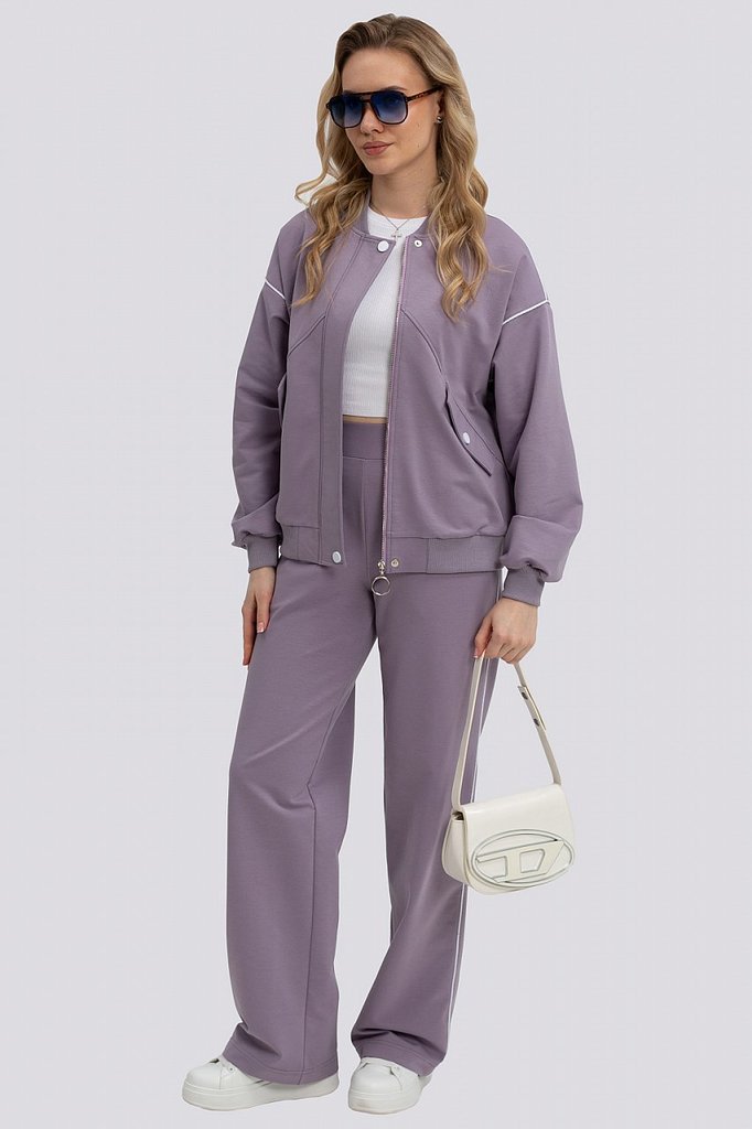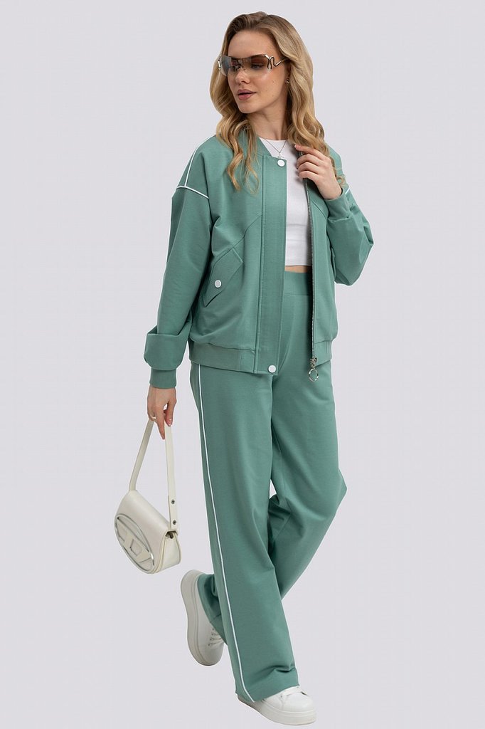Стильный трикотажный костюм. Олимпийка-бомбер на молнии стала настолько универсальной, что женщины с большим удовольствием носят ее круглогодично. Накладные карманы с клапаном, брюки с манжетами, на т... Показать описаниеалии – резинка. Модель представлена в контрастном сочетании и в однотонном, что удовлетворит запросы любой покупательницы. Состав трикотажа: 75% хлопок, 20% полиэстер, 5% спандекс.