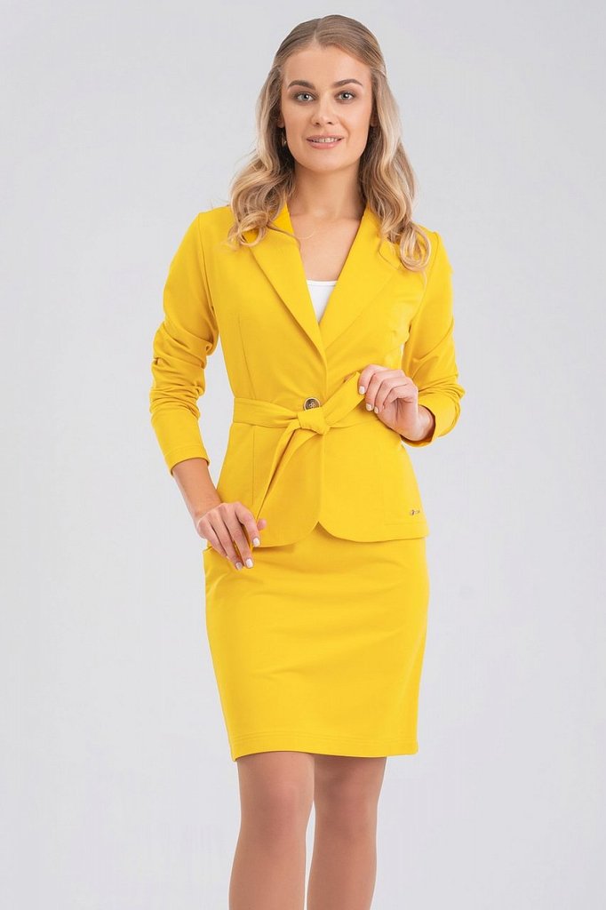 Этой весной актуальны костюмы с приталенным жакетом и юбкой до колена. Такой костюм поможет выглядеть женственной и привлекательной. Жакет приталенного силуэта с английским воротником и застежкой на п... Показать описаниеуговицы. На переде накладные карманы. Талию подчеркивает пояс на пряжке. Дополняет жакет юбка-карандаш элегантной длины. Пояс юбки на резинке. 75% хлопок, 20% полиэстер, 5% спандекс.