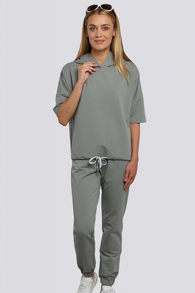 Летним вечером всегда приятно выйти на проминад в актуальном в этом сезоне костюме "спортшик". Худи - лаконичное, свободное, с серебряной отделкой, с декором из страз. По спинке- встречная складка. Бр... Показать описаниеюки приближены к классическому покрою, с карманами, по линии низа небольшие разрезы. Пояс на резинке. По низу рукава - резинка. Данный комплект очень женственный, не оставит равнодушной любую покупательницу. Состав ткани: 75% хлопок, 25% полиэстер, 5% спандекс.