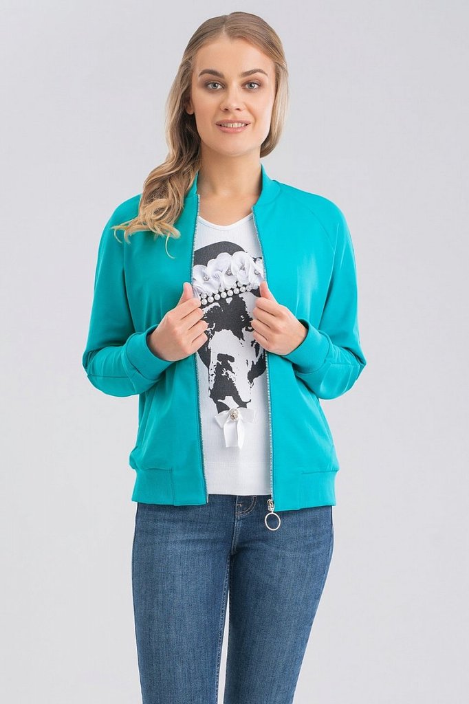 Женский бомбер с каждым годом лишь набирает популярность. Мягкий уютный, из трикотажа - он должен быть в гардеробе каждой девушки! Он хорош с джинсами, брюками, юбками и даже платьями! Отлично дополня... Показать описаниеет повседневные и праздничные образы. Воротник-стойка, застежка на молнию, объем изделия – свободный. Покрой рукава «реглан» очень комфортный в носке. Под клапанами – кармашки. Цветовая гамма удовлетворит вкус каждой покупательницы. Состав трикотажа: 40% хлопок, 50 % полиэстер, 10 % спандекс.