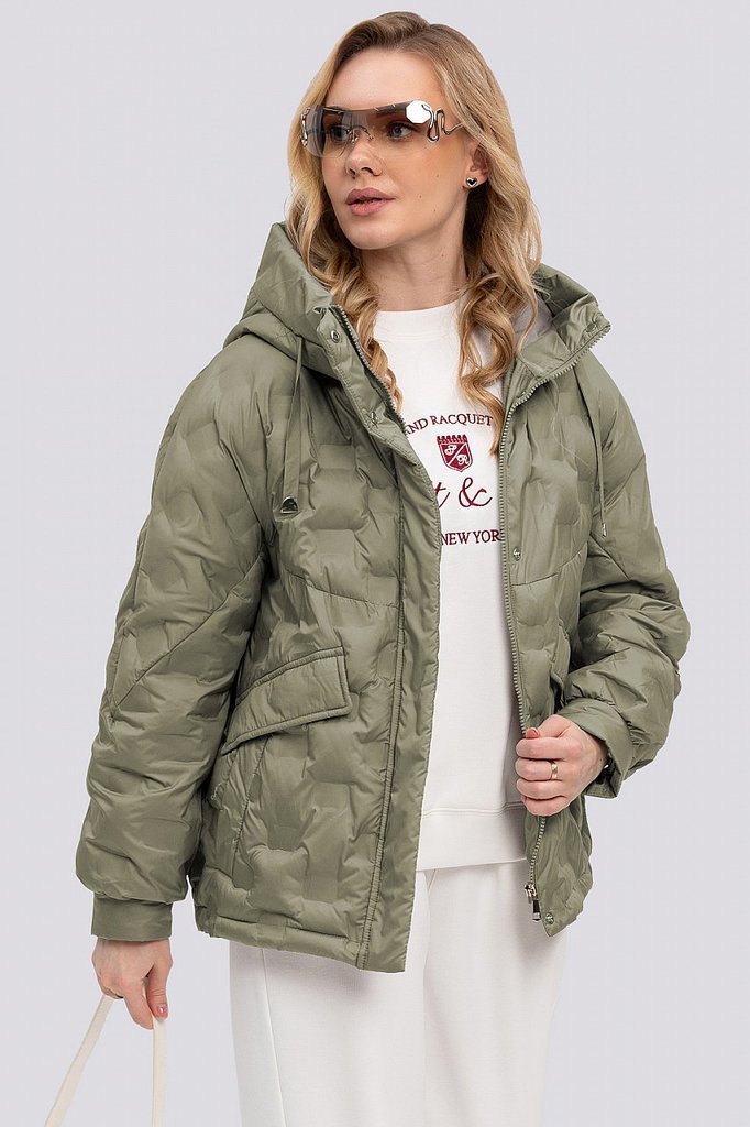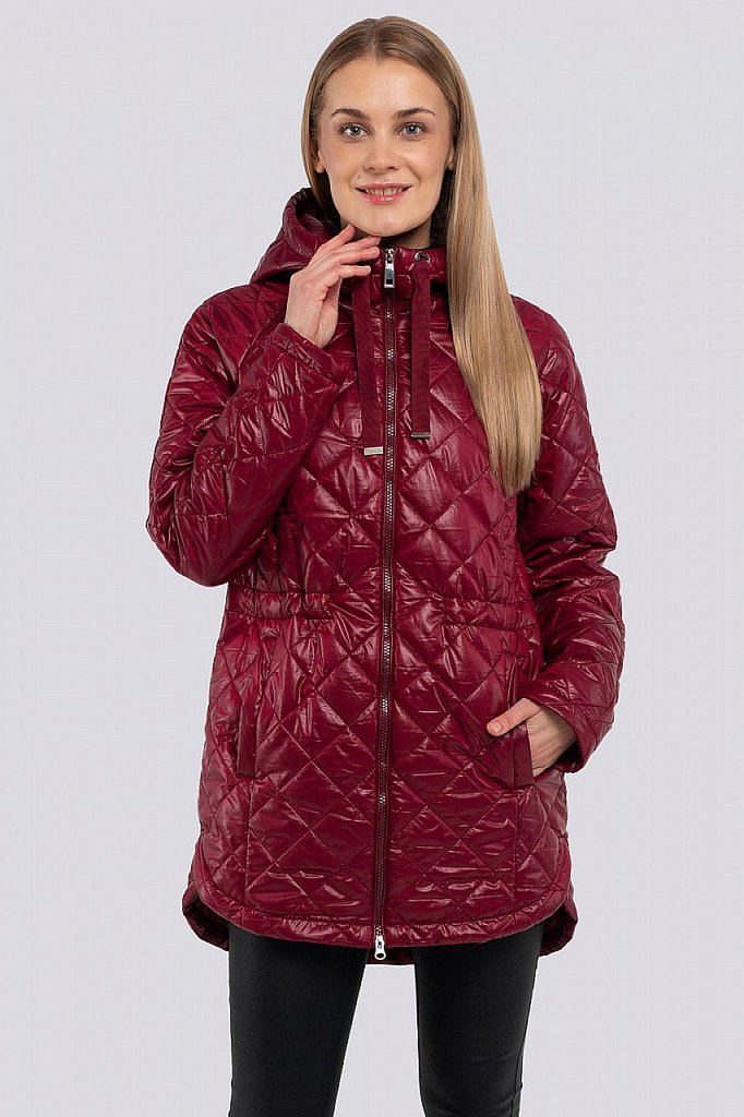Куртка женская из стеганой ткани прямого силуэта, слегка ниже линии бедер. Куртка не сковывает движений благодаря слегка свободному крою и позволяет чувствовать себя максимально комфортно в прохладную... Показать описание погоду. Сзади куртка немного удлинена. По бокам декоративные округлые разрезы, по талии кулиса на регулируемой резинке. Небольшой капюшон согреет вас в ветреную погоду. По переду карманы с листочкой расположены в рельефах. Застежка на молнию. Утеплитель термофин, плотность 100.