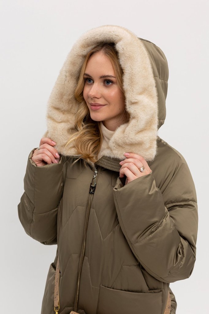 Почувствуйте настоящее тепло и уют в этом стильном женском пуховике! Его средний объем и прямая строчка создают элегантный и не громоздкий силуэт. Слегка спущенное плечо и втачной рукав дарят свободу ... Показать описаниедвижений, а внутренняя резинка на манжетах надежно защищает от проникновения холодного воздуха. Практичная молния спереди и карманы на молнии с аккуратной листочкой – все продумано для вашего удобства. А как же без изюминки? Декоративные молнии по бокам добавляют образу динамичности. Но главная прелесть – это капюшон! Он настолько комфортный благодаря мягкой искусственной норке внутри, что вы сможете смело отказаться от шапки, наслаждаясь теплом и стильным видом даже в самую холодную погоду. Небольшой отворот капюшона добавляет уюта и завершает образ. Утеплитель синтепух, плотность 250г/м + дополнительный слой термофин на подкладке 60г/м. Температурный режим до -25.