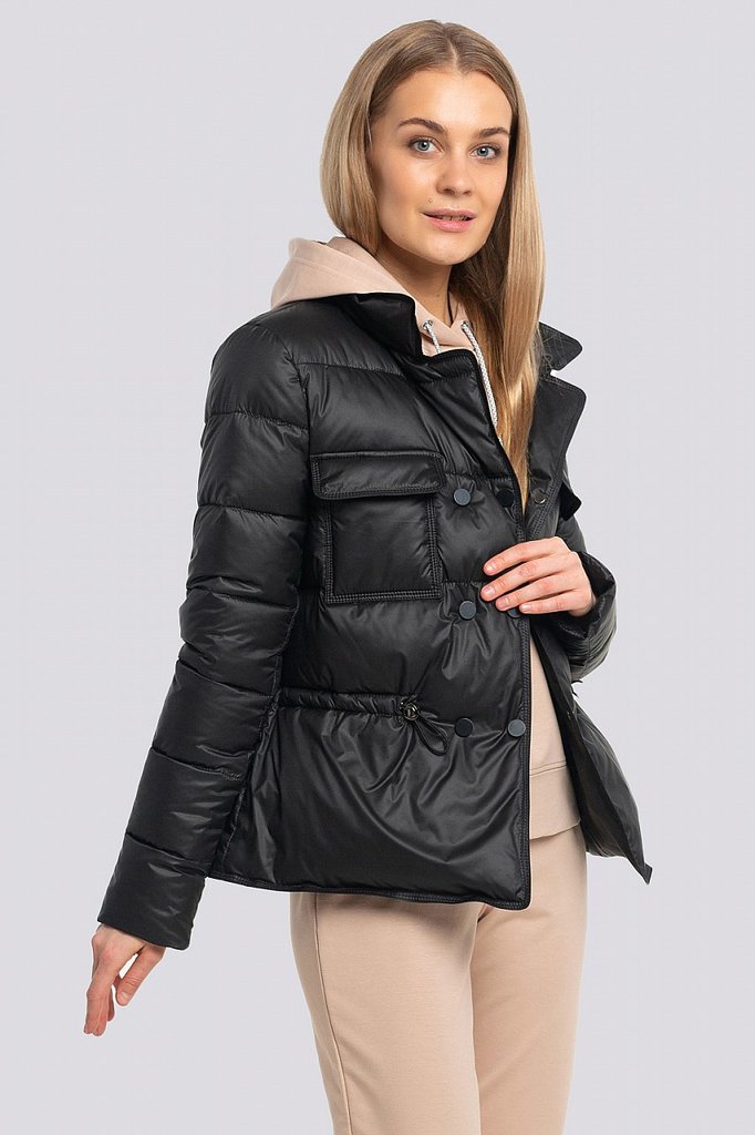 С приходом весны актуальной становится не только стильная, но и практичная верхняя одежда, которая максимально защитит от непогоды. Одной из самых популярных моделей в современном стиле считается женс... Показать описаниекая куртка с капюшоном. Такие фасоны не просто обеспечат полный комфорт и уют, но и помогут исключить использование дополнительных аксессуаров. Демисезонная утепленная куртка, слегка расширенная к низу с накладными карманами. Застежка смещенная на потайные кнопки, воротник стойка, капюшон отстегивается. Утеплитель термофин, плотность 150.