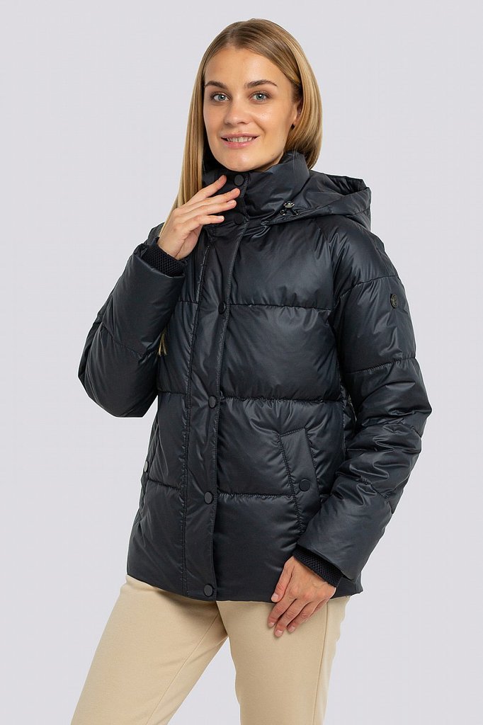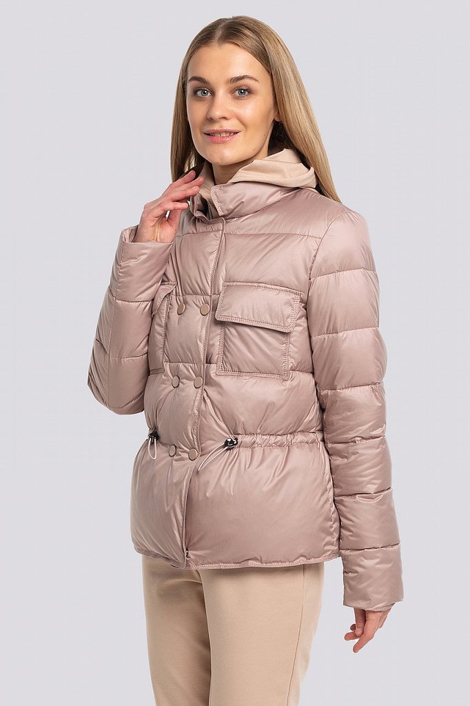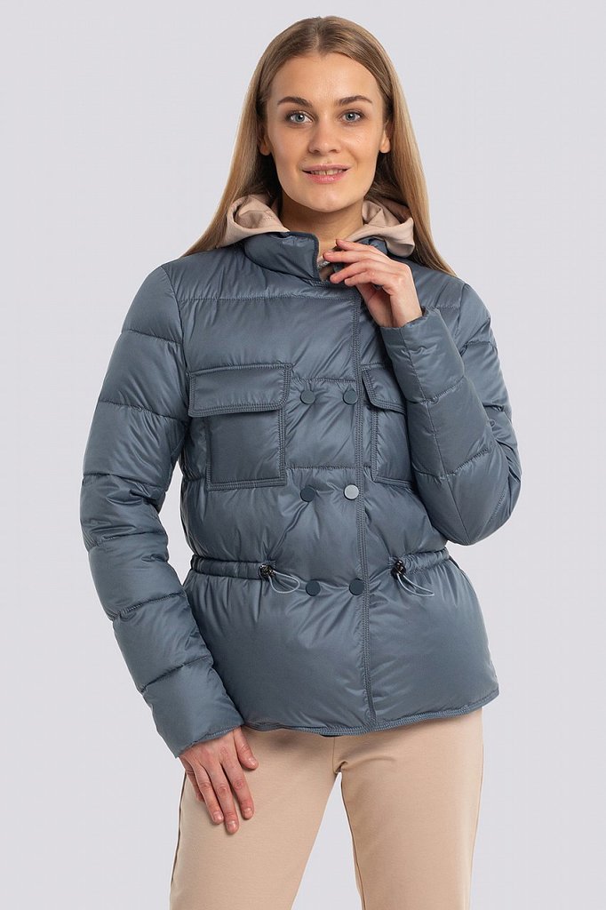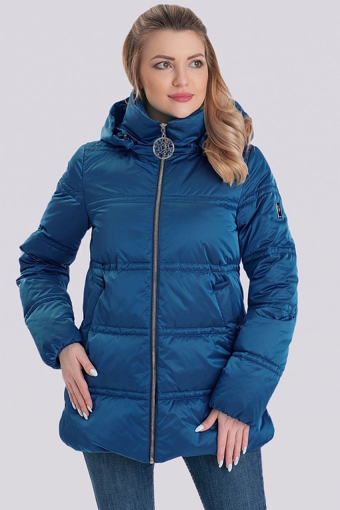 Теплая курка для ранней весны силуэта трапеция порадует любую модницу, ценящую качество и комфорт. Актуальной эту модель делает разная стежка на деталях переда и спинки, а также оригинальное использов... Показать описаниеание отделки серой репсовой лентой. Удобный втачной рукав внизу слегка присборен на резинку. Центральная застежка на молнию, удобные карманы с потайными кнопками и отстегивающийся капюшон делают эту модель очень практичной. Низ изделия оформлен фигурной линией, объем по низу изделия регулируется кулисой, спинка длиннее передней части на 9 см. Утеплитель синтепух-синтетический пух. Температурный режим до -10.