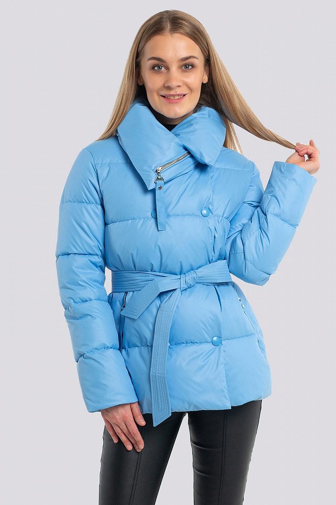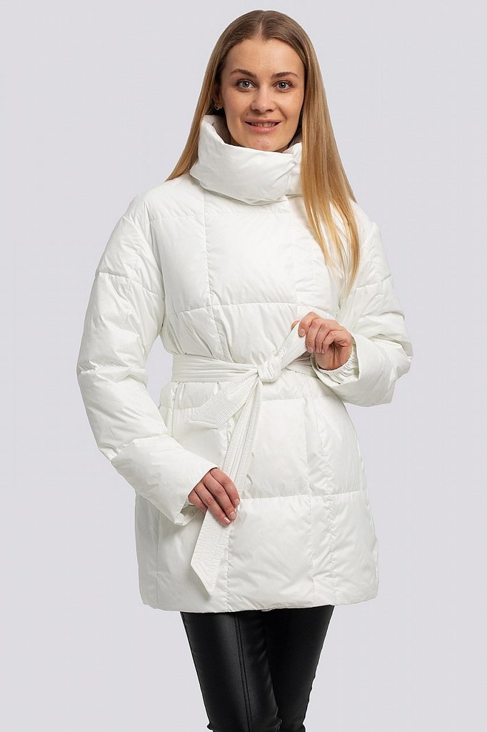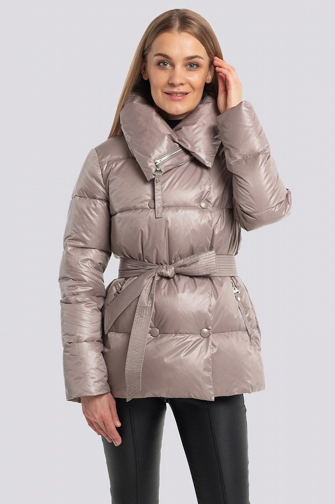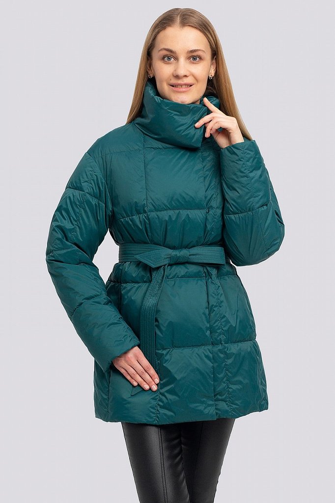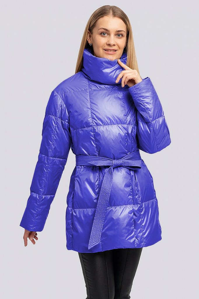 Куртка женская с поясом и с высоким объемным воротником. Свободный силуэт можно сделать изящнее, затянув поясом. По всей поверхности куртки классическая крупная прострочка. Достоинствами этой стеганой... Показать описание куртки являются: минималистичный дизайн с нотками спортивного стиля, декоративный элемент в виде высокого воротника и продуманные функциональные детали, которые отвечают за микроклимат, что очень актуально в холодную погоду. В рукавах предусмотрены эластичные манжеты. Застежка на потайные кнопки. Утеплитель синтепух, синтетический пух, плотность 150. Температурный режим до -5.
