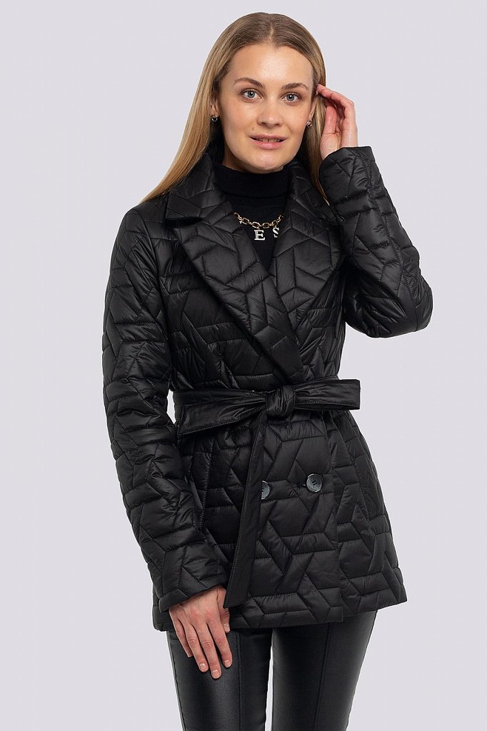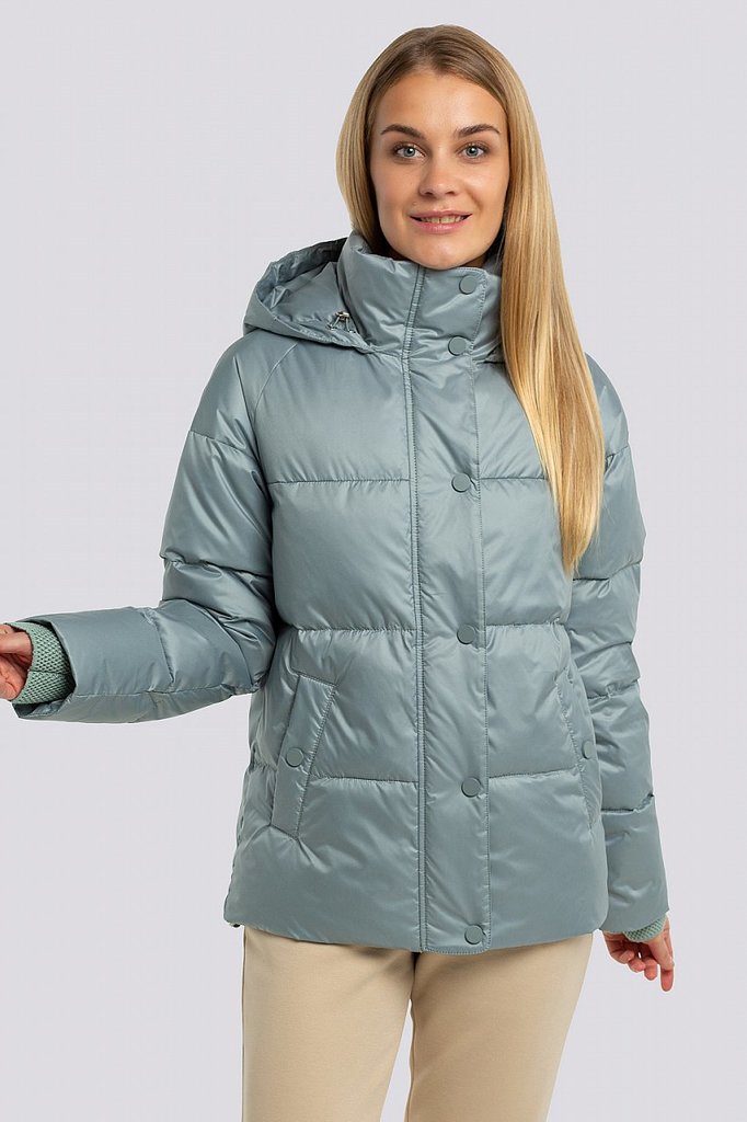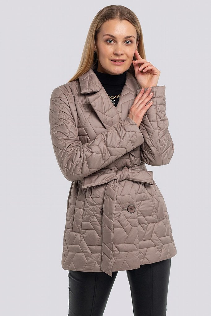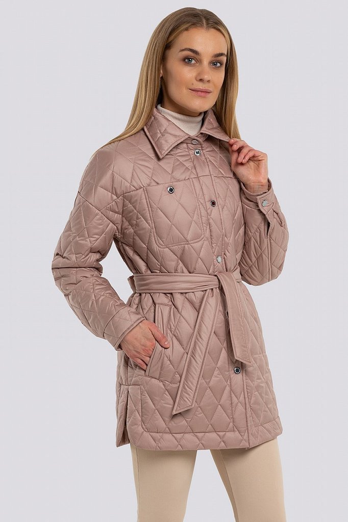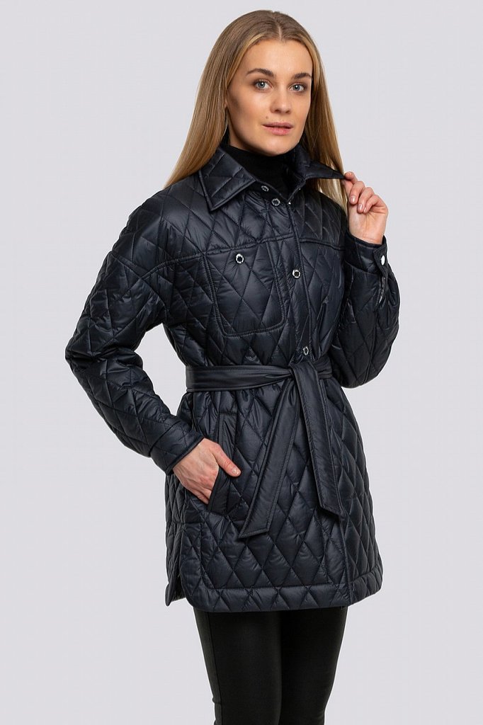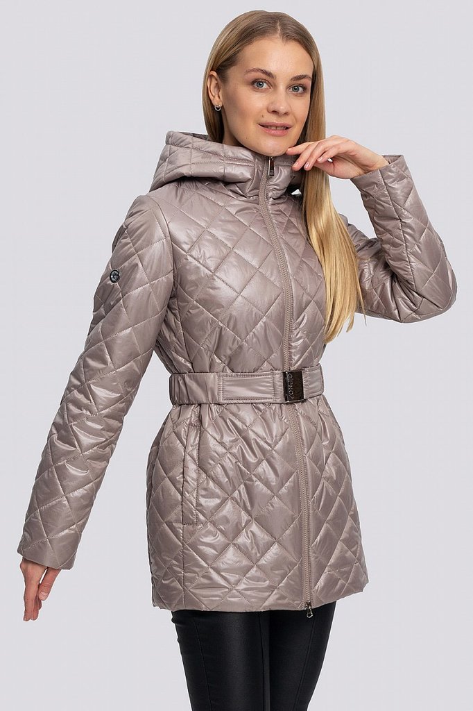 Куртка женская с поясом и с высоким объемным воротником. Свободный силуэт можно сделать изящнее, затянув поясом. По всей поверхности куртки классическая крупная прострочка. Достоинствами этой стеганой... Показать описание куртки являются: минималистичный дизайн с нотками спортивного стиля, декоративный элемент в виде высокого воротника и продуманные функциональные детали, которые отвечают за микроклимат, что очень актуально в холодную погоду. В рукавах предусмотрены эластичные манжеты. Застежка на потайные кнопки. Утеплитель синтепух, синтетический пух, плотность 150. Температурный режим до -5.
