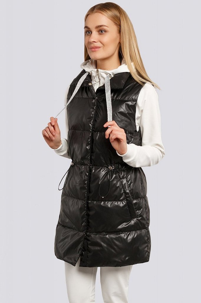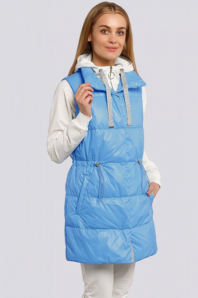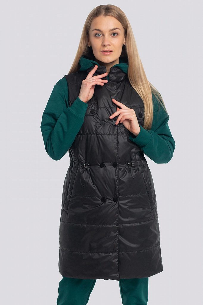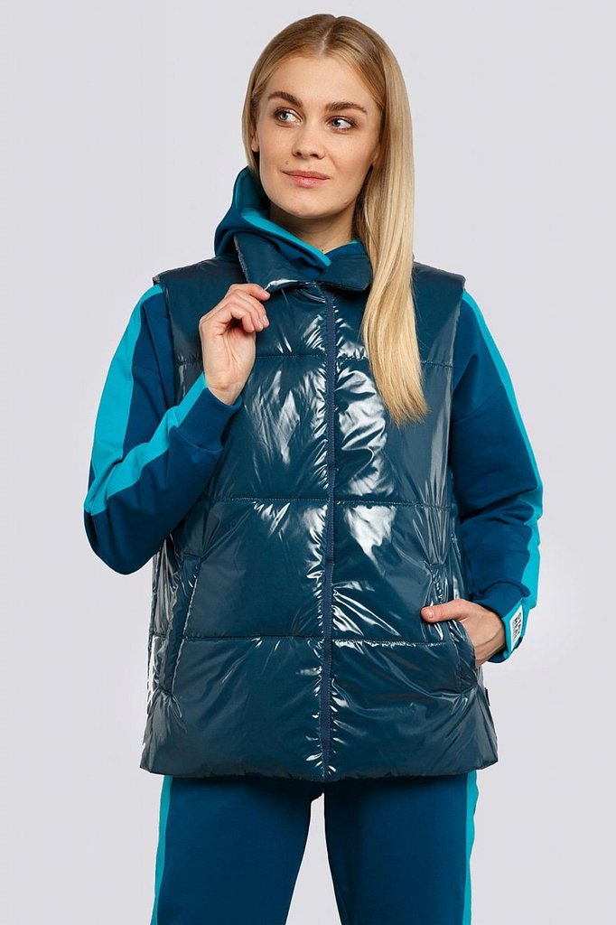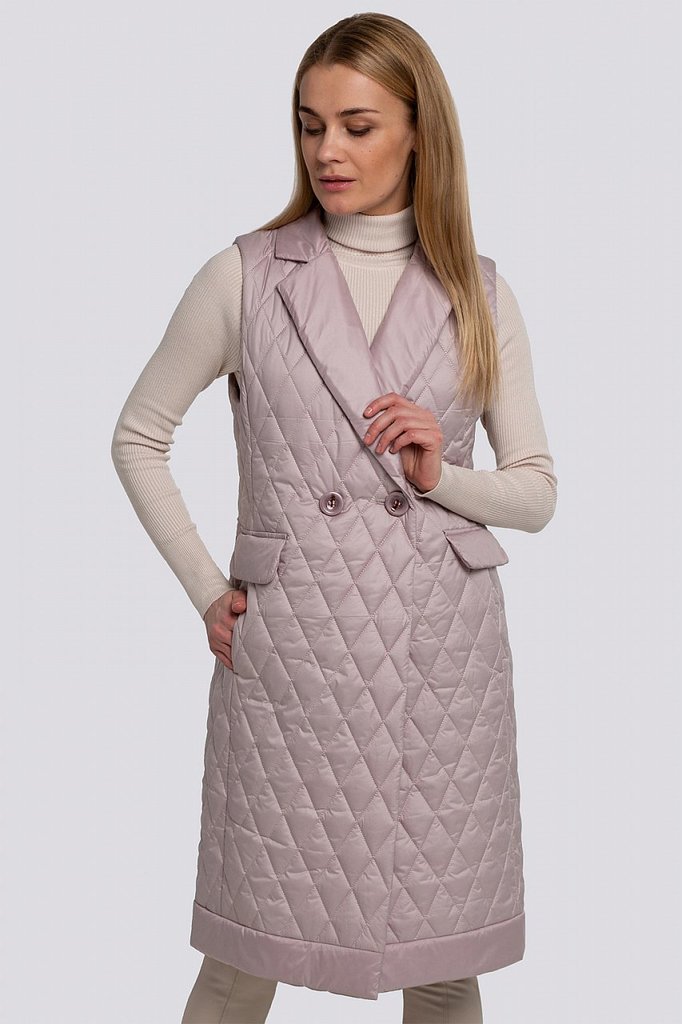 Теплые женские жилеты — не новый тренд, тем не менее его популярность усилилась, благодаря универсальности, практичности этой одежды среди других фасонов. Удлиненный жилет из стеганой ткани смотрится ... Показать описаниестильно и будет согревать вас в холодную погоду. Жилет прямого силуэта с английским воротником. Застежка двубортная на петли и пуговицы. Спереди карманы в швах и декоративные клапаны. На спинке – декоративный пояс на пуговицах. «Изюминку» в модель вносит сочетание стеганой ткани и деталей из гладкой ткани. Утеплитель термофин, плотность 100.