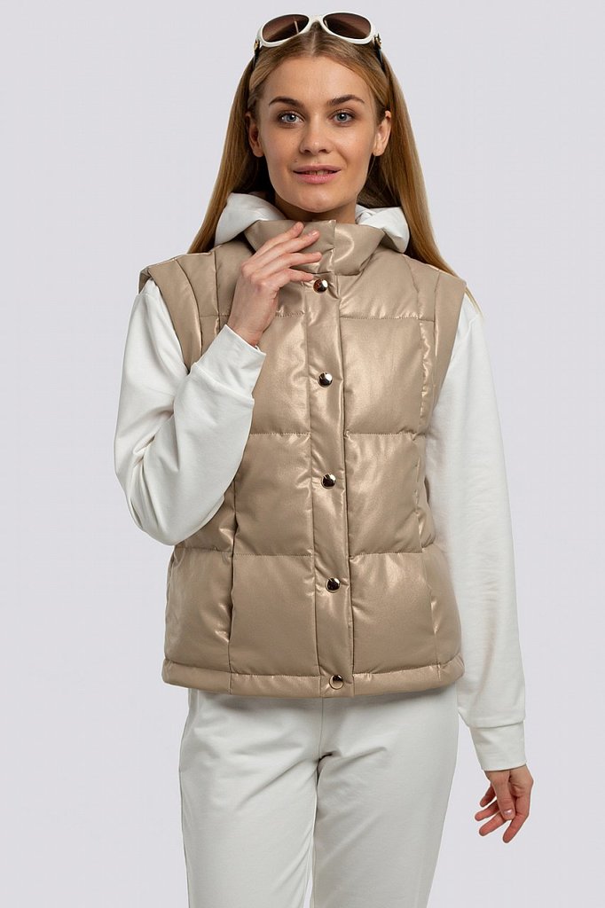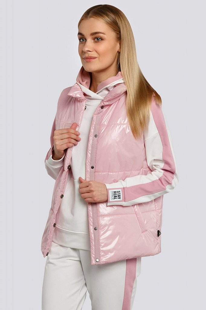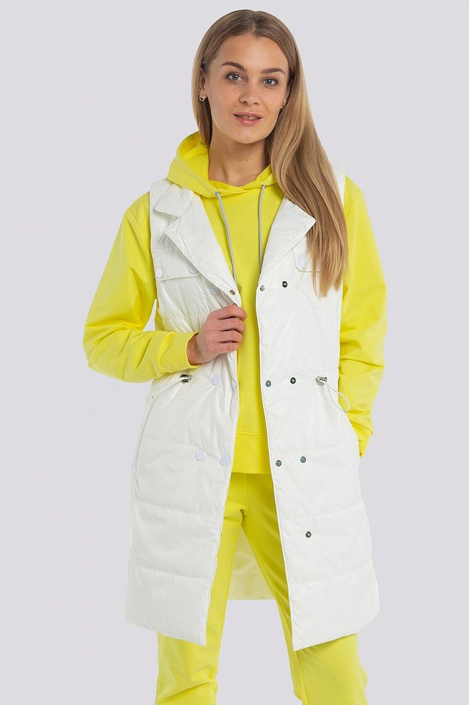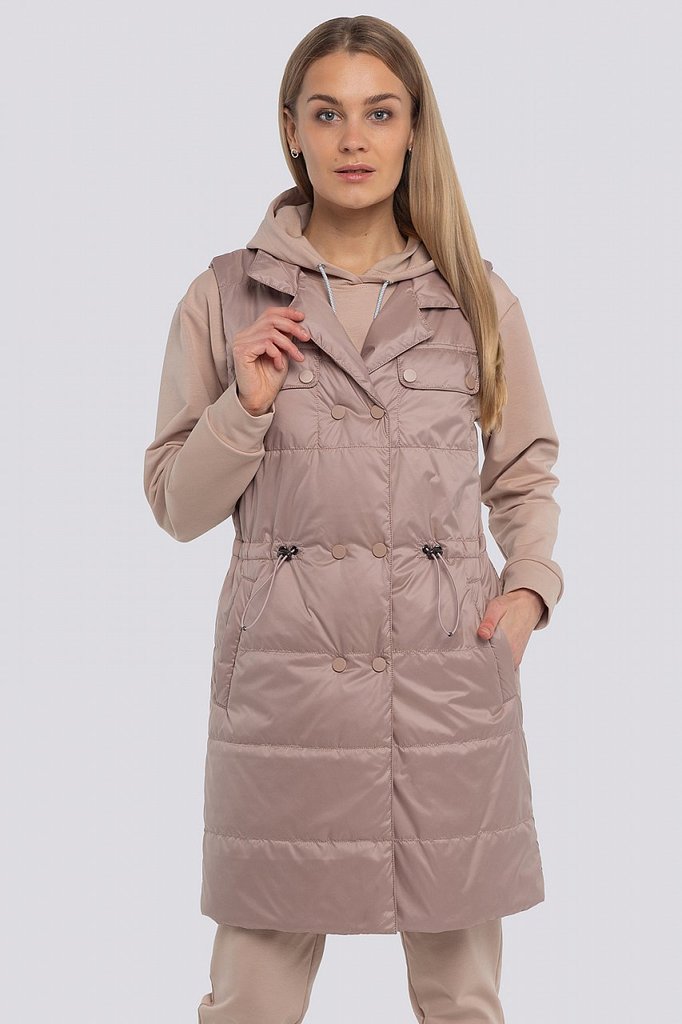 Легкий весенний жилет всегда впишется в ваш гардероб модницы! Он отлично смотрится с любой повседневной одеждой в стиле «Кэжуал». Линия талии регулируется кулисой, удобные карманы, комфортная длина. В... Показать описаниеоротник – отложной с лацканами, может превратиться в стойку, т.к. предусмотрена внутренняя застежка-магнит. Двойной ряд кнопок по краю борта смотрится оригинально, а также позволяет регулировать объем изделия. Утеплитель - термофин, плотность 100.