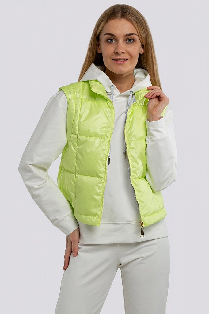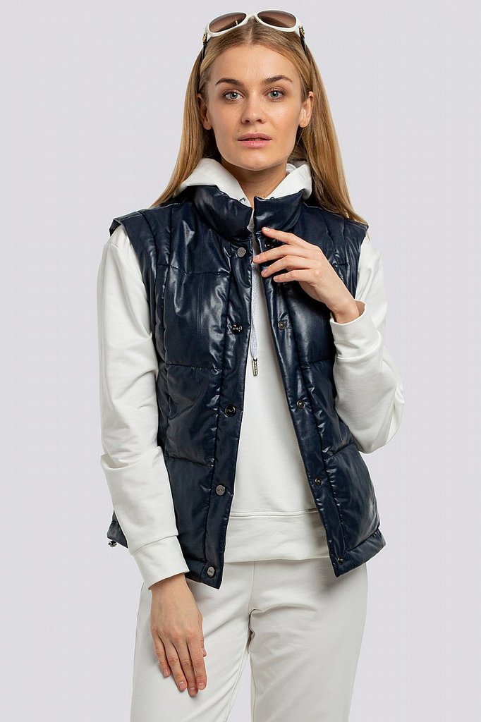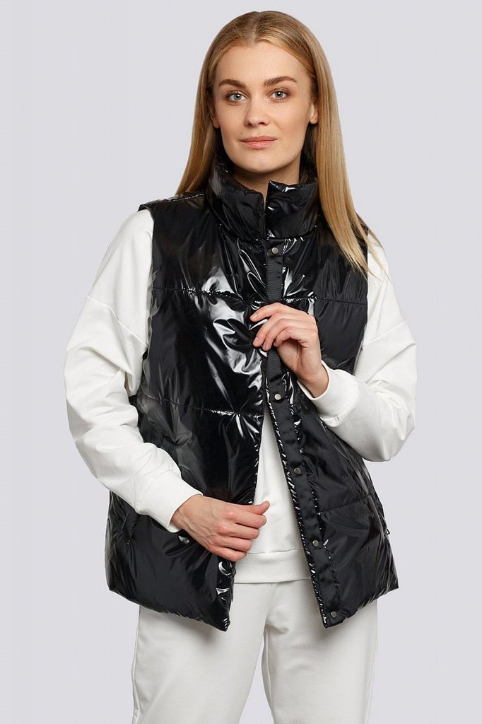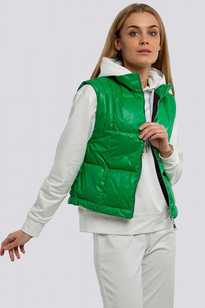 Утепленный жилет уже успел полюбиться модницам. Он отлично подходит и для ветреной весны, и для промозглой осени. Жилет женский прямого силуэта на потайных кнопках. Утеплитель термофин, плотность 100.