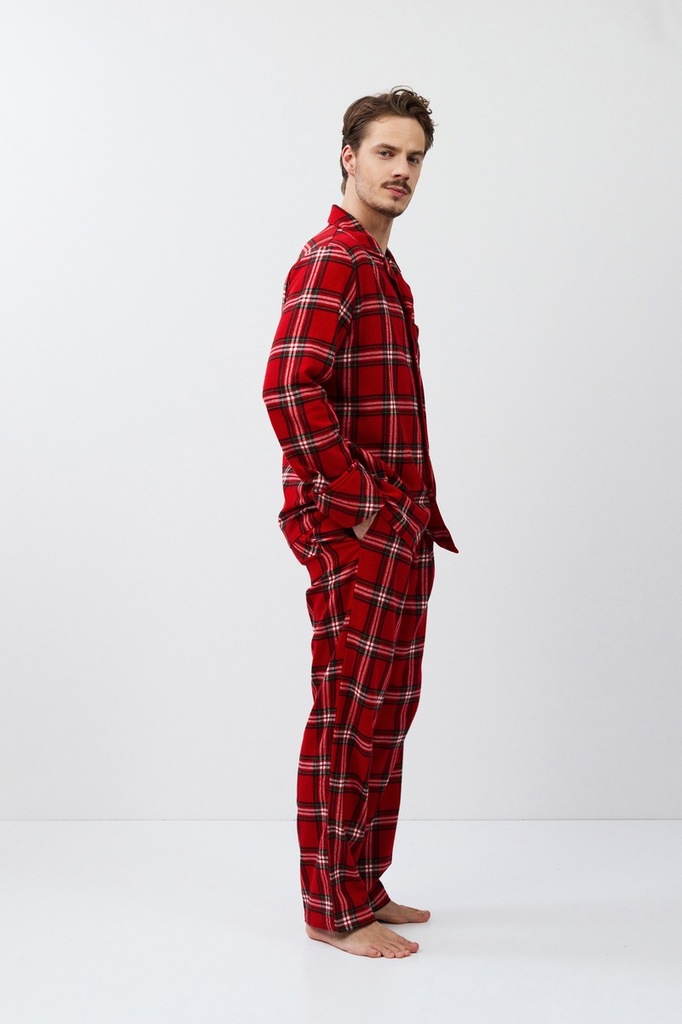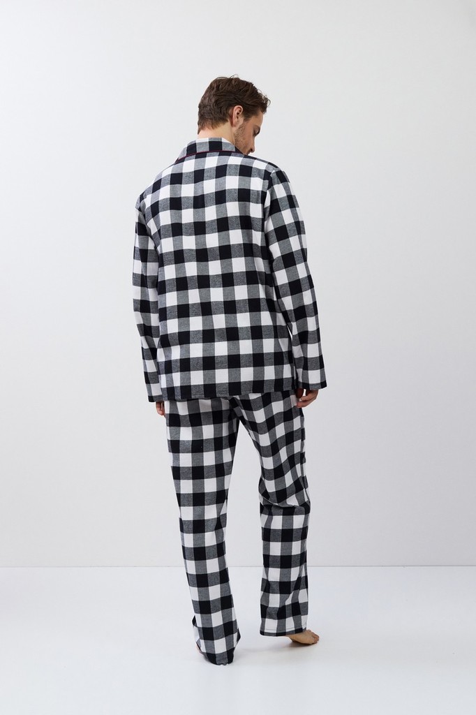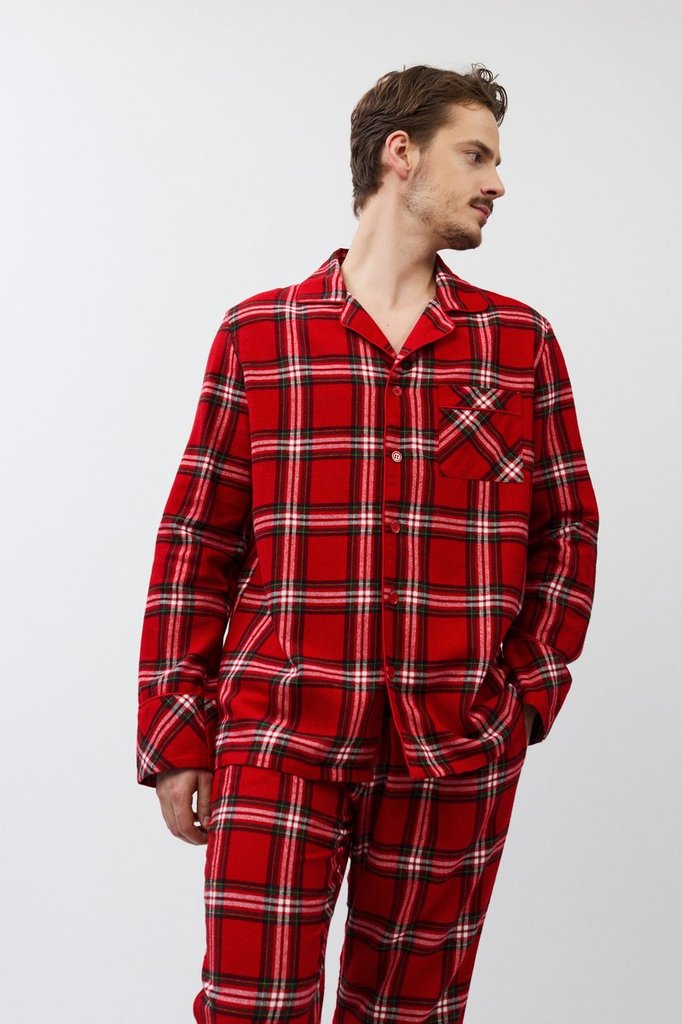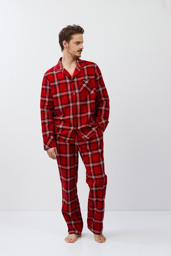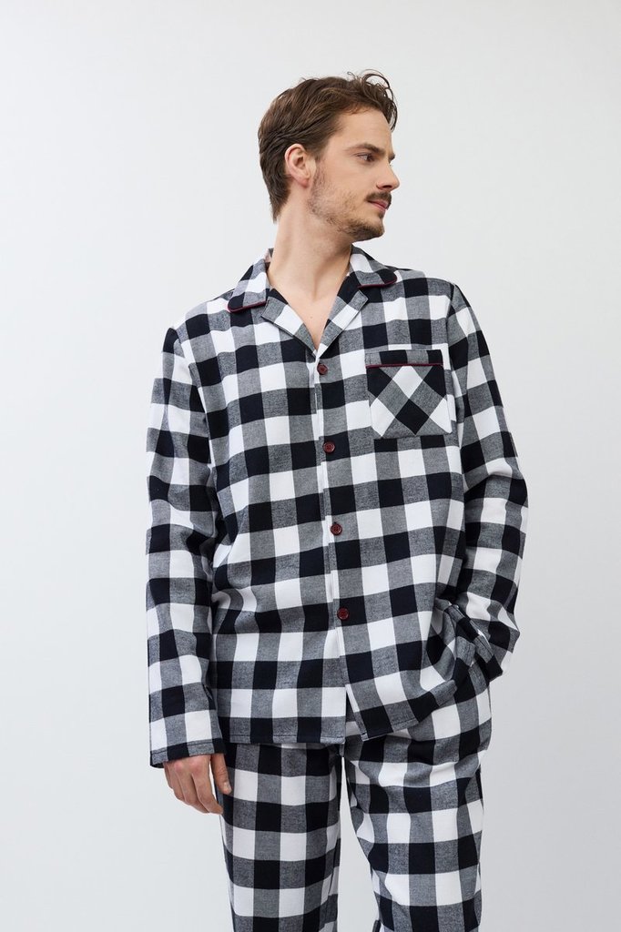 Пижама мужская со штанами BENNY для вашего ночного комфорта. Пижама выполнена из хлопковой фланели с добавлением люрексовой нити. Рубашка на пуговицах, с длинными рукавами, отложным воротником и нагру... Показать описаниедным карманом. Окантовка дополняет и украшает комплект. Штаны длинные, прямого кроя, с эластичным поясом с завязкой и боковыми карманами. Расслабьтесь с максимальным комфортом и стилем в пижаме BENNY.