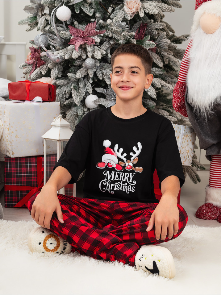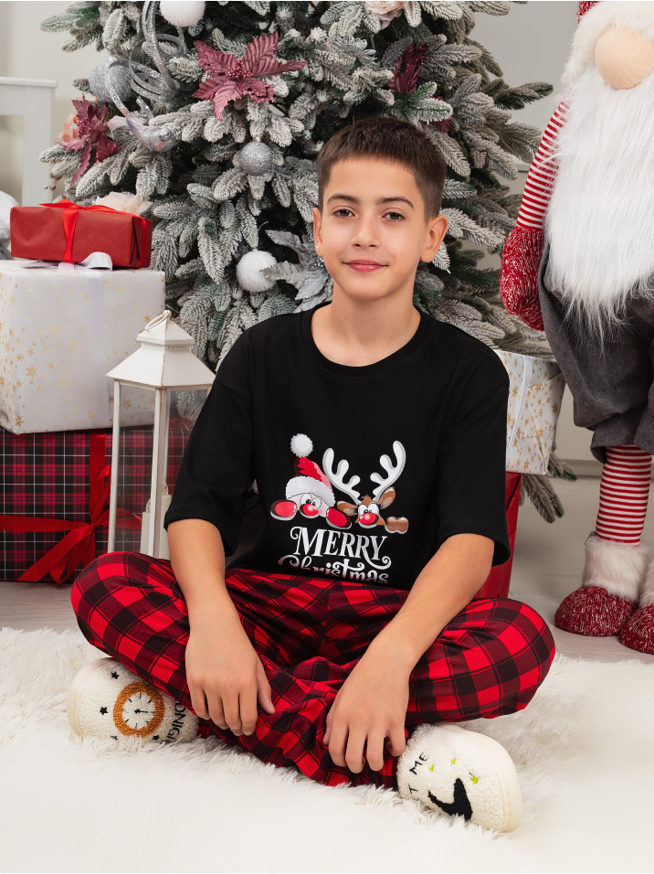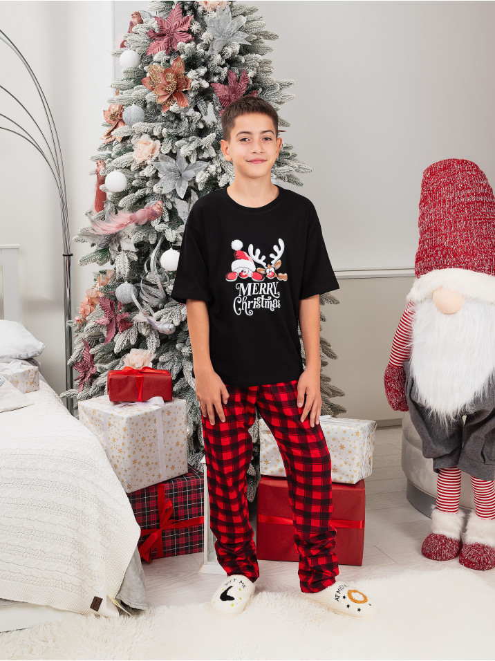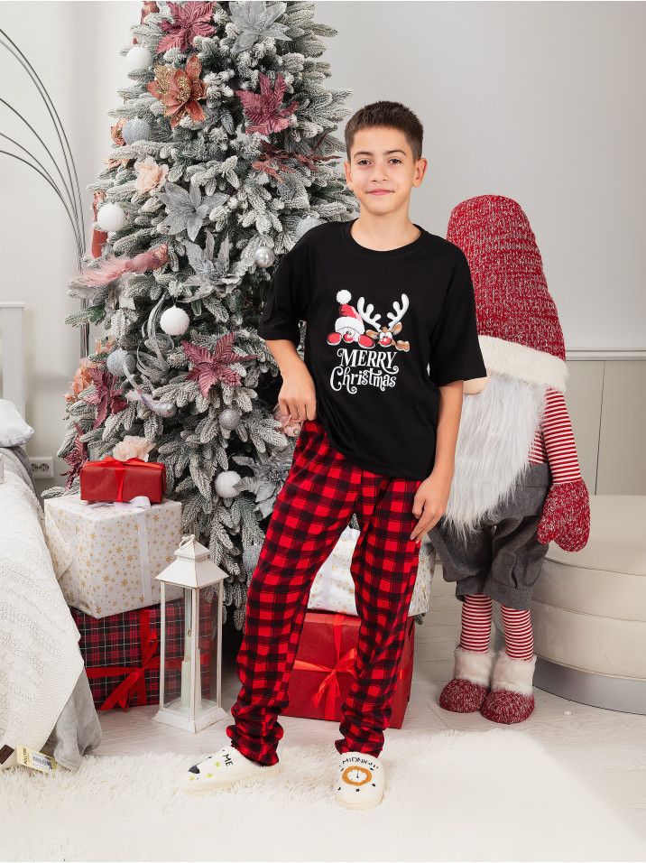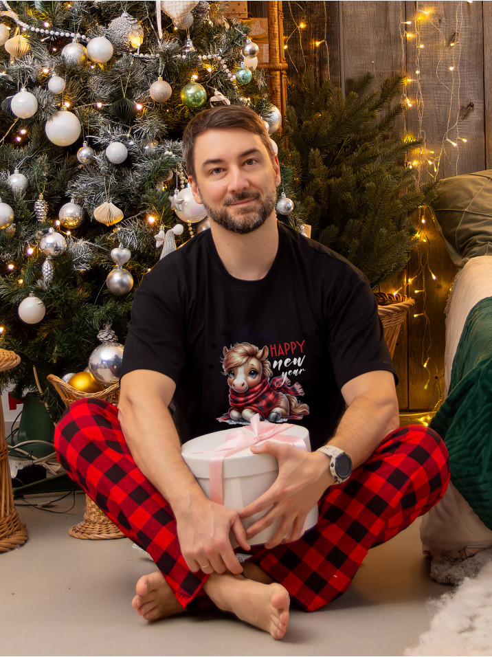 Краткое описание Хотите подарить вашему маленькому принцу или уже выросшему юному джентльмену стильный комплект для уютных домашних вечеров? Мы представляем вам нашу детскую пижаму со штанами для маль... Показать описаниечиков из высококачественной трикотажной хлопковой ткани. Этот комфортный и яркий набор, состоящий из футболки с интересным принтом и штанов в модной клетку, понравится как самым маленьким модникам, так и уже подросткам. Особенностью этой пижамы является уникальный принт, на котором изображен символ - талисман грядущего года. Такой костюм прекрасно подойдет для новогодней семейной фотосессии в стиле "фэмили-лук". И самое интересное, у нас есть такие же рисунки на женских пижамах! Таким образом, вы сможете создать настоящий праздничный "Family look". Наша пижама не только стильная, но и функциональная. Она не будет слишком теплой для вашего малыша, так как не является байковой или флисовой. Тем не менее, натуральная ткань прекрасно удерживает тепло и приятна к телу, создавая комфорт даже в холодные осенние и зимние вечера. Этот детский костюм для дома станет отличным подарком для вашего сына, брата, внука или даже друга на Новый год, Рождество или день рождения. Не упустите возможность порадовать ваших близких подарком, который наполнит их моментами счастья и уютом!