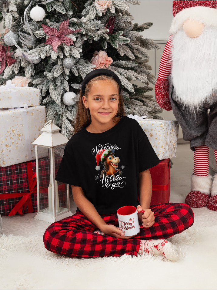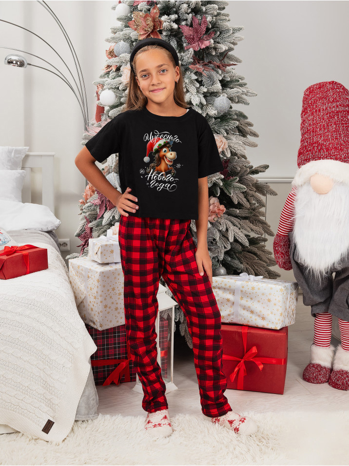 Краткое описание Хотите подарить вашей маленькой принцессе или уже подросшей юной леди незабываемый комплект для уютных домашних вечеров? Мы представляем вам нашу детскую девичью пижаму из высококачес... Показать описаниетвенной трикотажной хлопковой ткани. Этот уютный и яркий комплект, состоящий из лонгслива с веселым принтом и штанов в стильную клетку, понравится как самым маленьким модницам, так и уже подросткам. Особенностью этой пижамы является уникальный принт, на котором изображен символ - талисман грядущего года. Такой костюм прекрасно подойдет для новогодней семейной фотосессии в стиле "фэмили-лук". И самое интересное, что у нас есть такие же рисунки на мужских и женских пижамах! Таким образом, вы сможете создать настоящий праздничный "Family look"! Наша пижама не только стильная, но и функциональная. Она не является байковой или флисовой, поэтому не будет слишком теплой для вашей девочки. Тем не менее, натуральная ткань отлично удерживает тепло и приятна к телу, создавая комфорт даже в холодные зимние вечера. Этот детский костюм для дома станет прекрасным подарком для вашей дочери, сестрички, внучки или даже подруги на Новый год, Рождество или день рождения. Не упустите возможность порадовать ваших близких настоящими моментами счастья и уютом!