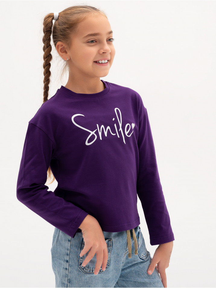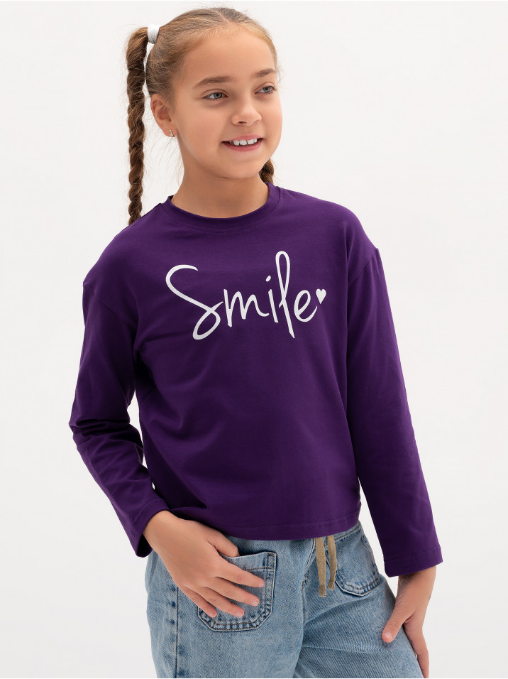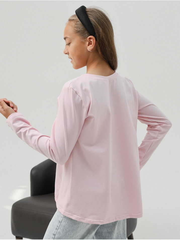 Краткое описание Трикотажный лонгслив для девочки . Это базовый предмет одежды с длинным рукавом и округлым вырезом, который сочетает в себе стиль и комфорт. Современный детский лонгслив свободного кр... Показать описаниеоя без застёжек не сковывает движений. Хлопок входящих в состав ткани делает свитшот приятным на ощупь, округлая горловина обработана мягкой манжетой. Модная кофточка подойдёт как для детей, так и для подростков. Разнообразная цветовая палитра придется по вкусу любой маленькой моднице, а стильный принт надпись всегда добавят изюминку образу и выделить среди других. Базовая подростковая кофта эффектно смотрится с любым видом низа: джинсами, юбками, шортами, велосипедками. Футболка для девочки с длинным рукавом универсальная вещь для любого времени года. Свитшот детский отлично подойдёт и для активного отдыха на природе, занятий спортом, путешествий, а также в качестве формы в детском саду, так и в школе. Лонг для ребёнка универсальный вариант для повседневной носки дома, для вечерних прогулок летом и весной, семейных фотосессий, в качестве нарядной одежды на праздник. Наш трендовый джемпер с современным дизайном - это отличный выбор для девочек, которые хотят быть яркими, модными, следят за модой и ведут активный образ жизни.