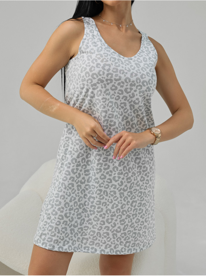 Краткое описание Представляем вам легкое и комфортное платье-майку от Sofia_trikotaz, которое станет незаменимым в вашем домашнем гардеробе! Особая изюминка данной модели - спинка " борцовка ". Сшитое... Показать описание из 100% хлопка, оно подарит вам невероятный комфорт в любое время года. Свободный крой и длина мини делают его идеальным вариантом для жарких летних дней, а модный леопардовый принт добавит вашему образу игривости. Оптимальная длина для высоких и невысоких девушек, а так же для девочки подростка. Это платье - туника прекрасно подойдет как для повседневной носки, так и для дома, можно использовать, как ночную сорочку. Благодаря своей универсальности, оно станет отличным выбором для будущих мам и женщин с пышными формами. Легкая и воздухопроницаемая ткань обеспечит вам комфорт в течение всего дня, а интересная спинка добавит изюминку вашему образу. Отличный вариант для пляжа. Для свободной посадки рекомендуем брать на 1-2 размера больше