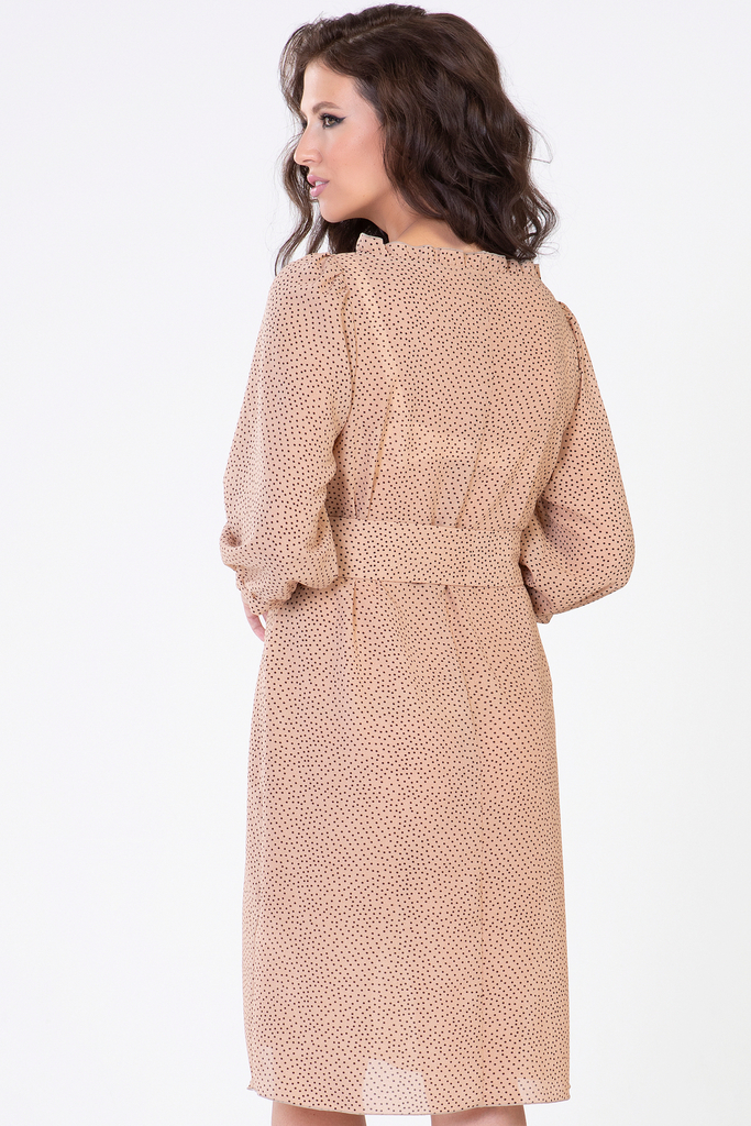 Платье трапециевидного силуэта, со съемным поясом из основной ткани. Горловина лодочка , с рюшем . Рукав втачной, 3/4, по низу со сборкой и притачной манжетой. К платью прилагается чехол из вискозного... Показать описание полотна бежевого цвета.Наименование ткани. Креп-шифон. Силуэт. Трапециевидный. Длина изделия. 101. Тип рукава. Втачной. Длина рукава. 3/4 Состав (по процентам). 65% пэ, 30% вискоза, 5% эластан. Застежка. Нет. Уход. Машинная стирка 30°С. Производитель. Prima linea/Прима линия Рост модели. 180. Cезон. Всесезонный. Размерный ряд. 44-58. Цвет. Мультиколор. Вид материала. Плательная.