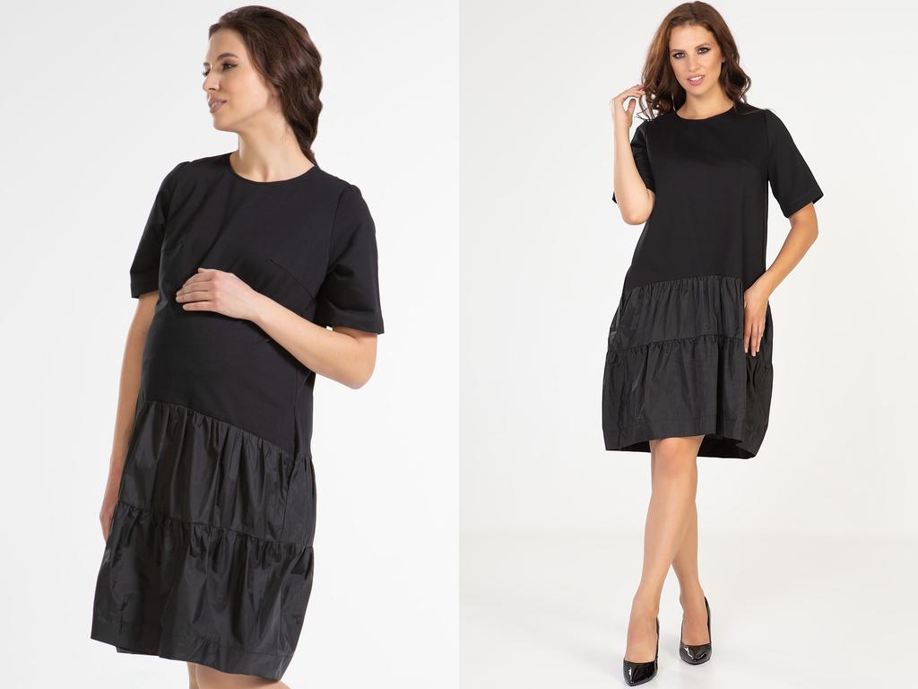 Платье трапециевидного силуэта, отрезное по линии бедер, с карманами в рельефных швах переда.Горловина круглая, рукав втачной, короткий. Спинка с застежкой в среднем шве на короткую тесьму молнию. Ниж... Показать описаниеняя часть переда и спинки с воланами в два ряда, собраными в сборку. Низ платья на обтачке.Платье выполнено из разного сырья : верхняя часть переда и спинки, рукава - из трикотажного полотна футера двухниточного, нижняя часть переда и спинки - из тонкой плащевой ткани. Цвет черный.Наименование ткани. Футер. Силуэт. Трапециевидный. Длина изделия. 108. Тип рукава. Втачной. Длина рукава. Короткий. Состав (по процентам). 50% хлопок, 50% пэ. Застежка. Молния. Карманы. Карманы в боковых швах. Уход. Машинная стирка 30°С. Производитель. Prima linea/Прима линия Рост модели. 180. Cезон. Всесезонный. Размерный ряд. 42-60. Цвет. Черный. Вид материала. Плательная.