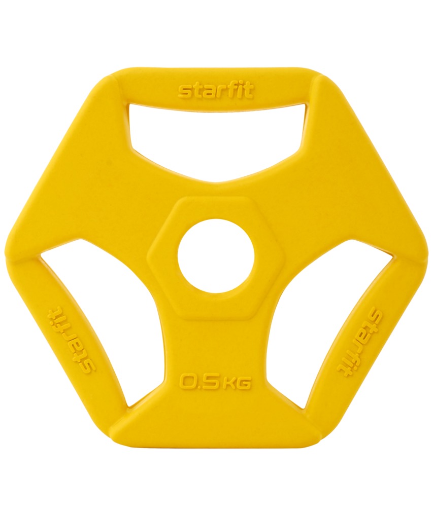 Диск обрезиненный с хватами STARFIT BB-205 d=26 мм, без стальной втулки, желтый, 0,5 кгВопросы по товару