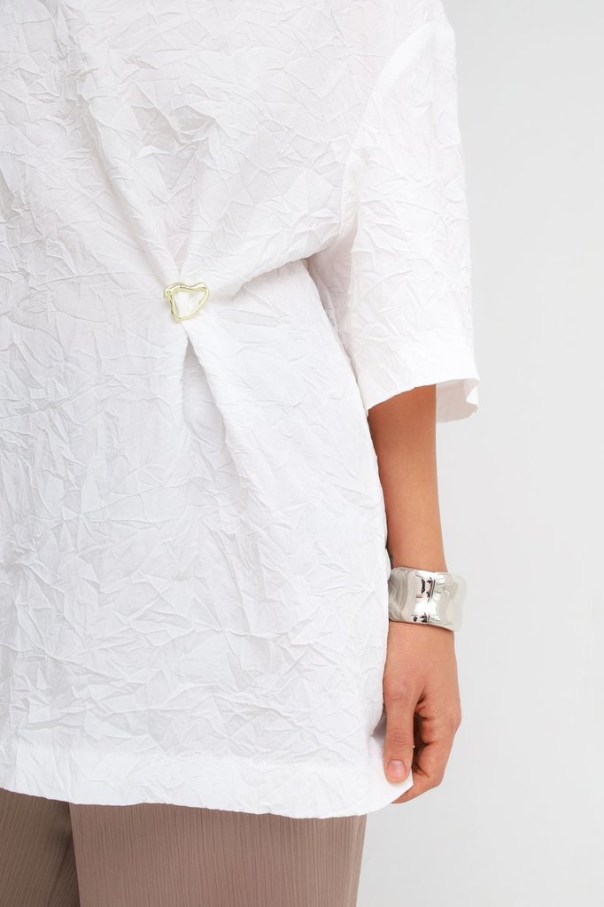 Блузка женская свободного кроя. Потайная молния на спинке. Обратите внимание: брошь, представленная на модели, является частью созданного образа для фотосъемки и НЕ ВХОДИТ в комплект. Вы приобретаете ... Показать описаниетолько блузку.