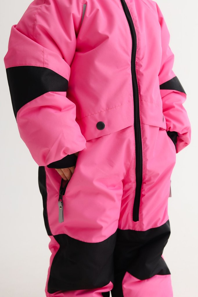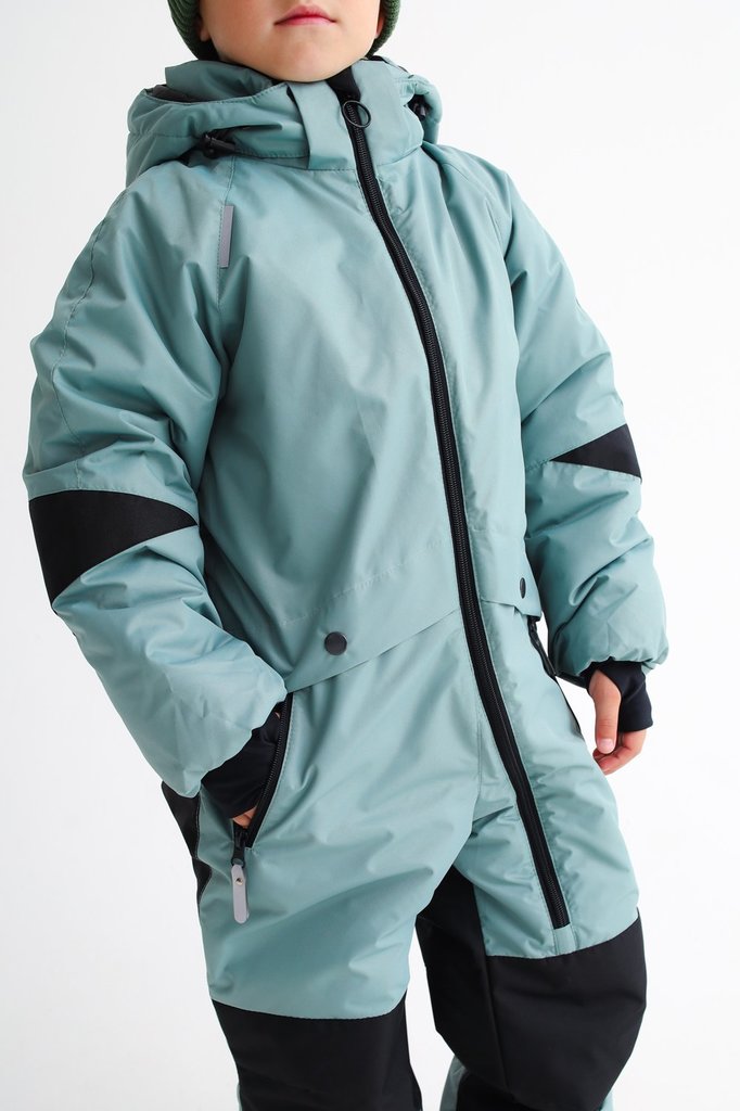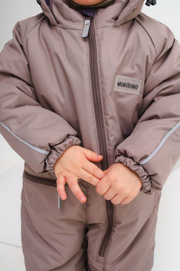 Комбинезон зимний с наклонной застежкой на молнию. Внутренний ветрозащитный клапан с защитой подбородка от защемления. Рукав-реглан, низ рукава обработан манжетой на резинке.Спереди прорезной карман ... Показать описаниена молнии. По спинке кулиса с резинкой по талии. Низ брюк на противоскользящей резинке. Воротник-стойка, капюшон втачной с утяжкой на шляпную резину. Лямки-помочи дают возможность легко скинуть верхнюю часть комбинезона в помещении. Световозвращающие элементы для безопасности в любое время суток. Фирменная брендированная нашивка Minidino.Примерный температурный режим от -5°С до -30°С.