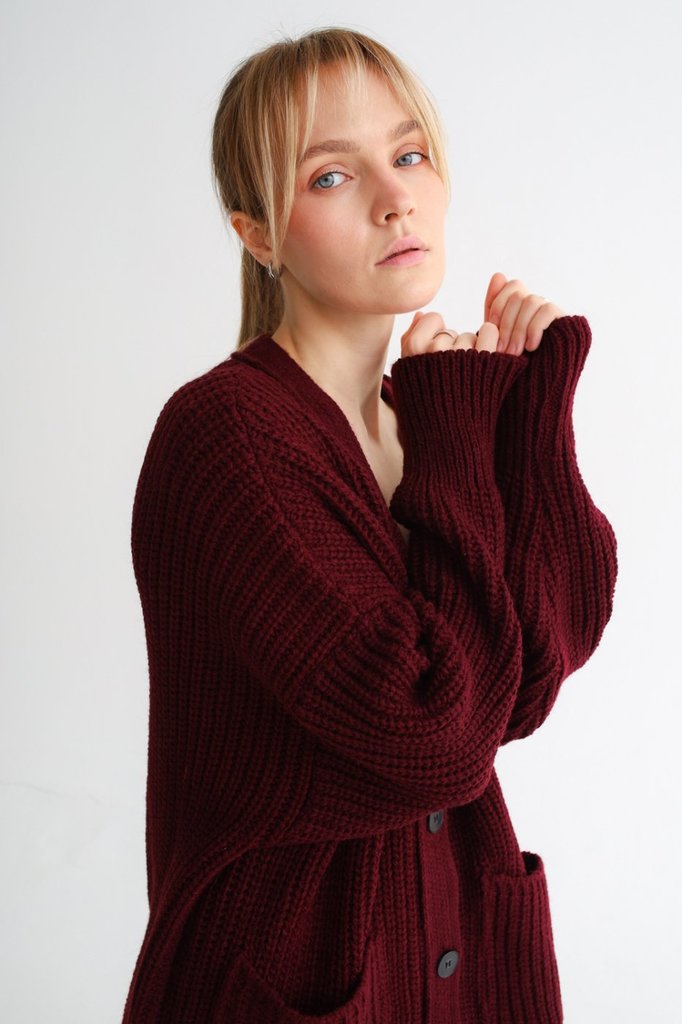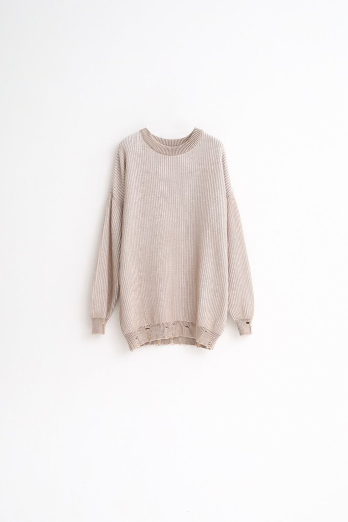 Эффектное двухцветное плотное переплетение с выразительными полосами. Длинные рукава. Дырки на манжетах рукавов и по низу изделия. Круглый вырез горловины.