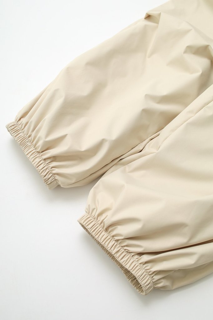 Анорак свободного силуэта, регулируемая кулиса по низу изделия. Спущенная линия плеча. Частичная застежка на молнию. Вышивка на полочке. Длина до линии бедер