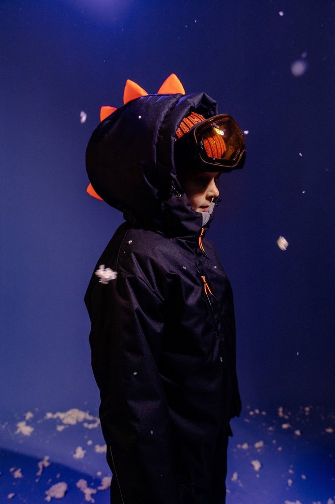 Комбинезон умеренного объема с центральной застежкой на молнию.Капюшон с утяжкой на шнуровую резину. Световозвращающие элементы. Рукава с внутренними трикотажными манжетами для защиты от снега и ветра... Показать описание. Манжеты на штанинах с противоскользящей резиной плотно облегают обувь. Внутренние мягкие лямки из помочной резины, благодаря которым можно скидывать верхнюю часть комбинезона и носить в помещении по принципу рюкзака. Накладной карман на кнопках. Фирменные Дино-гребни на спине и капюшоне. Примерный температурный режим от -30°С до -5°С.