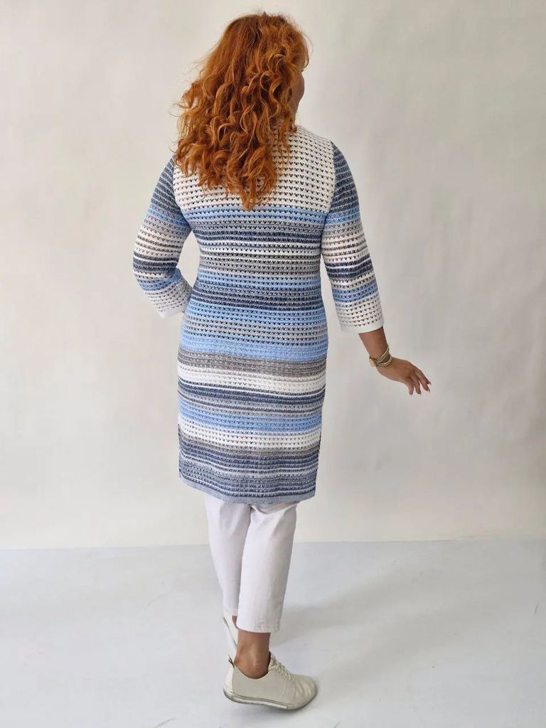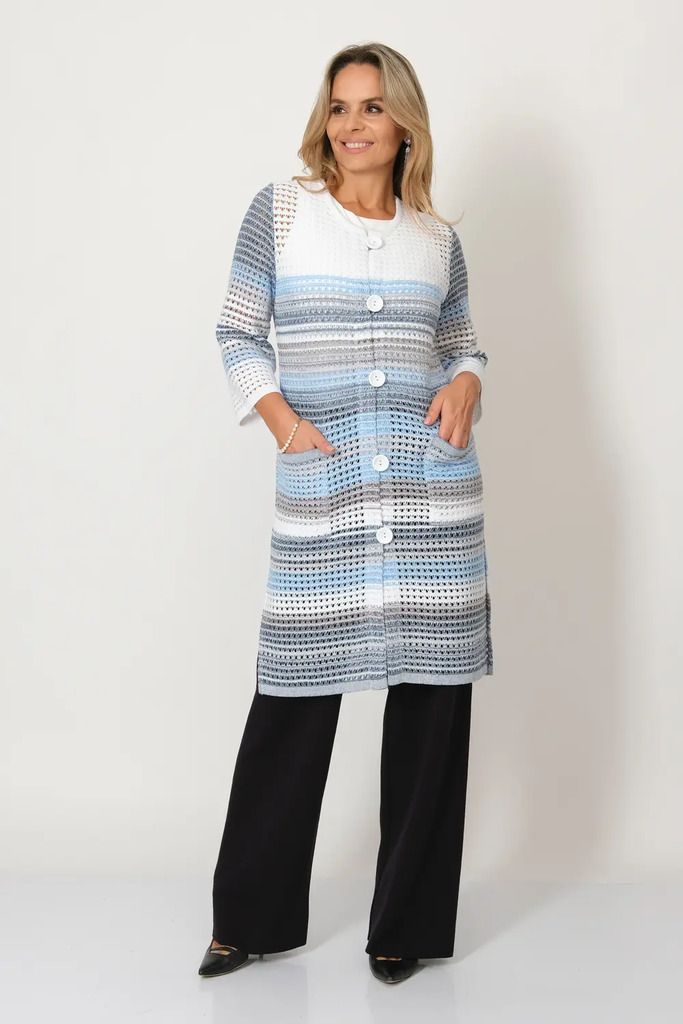 Кардиган женский вязаный, предназначен для тёплого времени года. Свободный прямой силуэт и крупная сеточка придают кардигану оригинальную легкость. А цветовая гамма показывает в изделии романтический ... Показать описаниестиль. Благодаря такому многоцветию палитра красок подобна радуге после дождя. Горловина кардигана круглая и лёгкая. Небольшие удобные накладные карманы. Застёгивается изделие на крупные пуговицы с помощью воздушных петель. Кардиган можно сочетать с различной одеждой цветных и пастельных тонов. Данная модель является особой новинкой сезона.