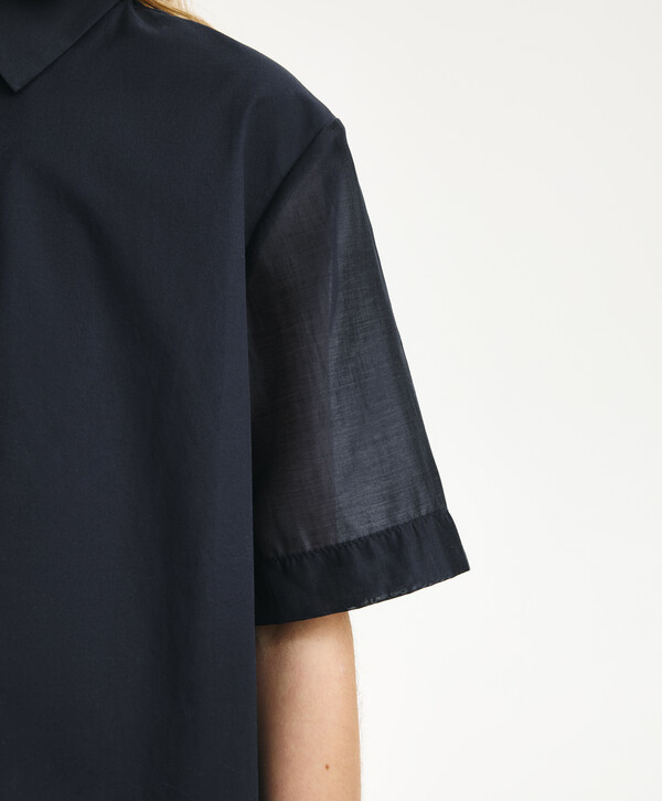 Белая текстильная блузка с коротким рукавом создана для ценительниц изящных акцентов. Укороченная длина, застежка на пуговицы, вертикальные защипы на передней части создают баланс между сдержанной кла... Показать описаниессикой и модным современным дизайном. Легкий и дышащий поплин делает изделие приятным к телу, комфортным в эксплуатации и уходе. Блузка хорошо сочетается с юбками и брюками с высокой посадкой, подчеркивая актуальные пропорции в образе. 100% хлопок