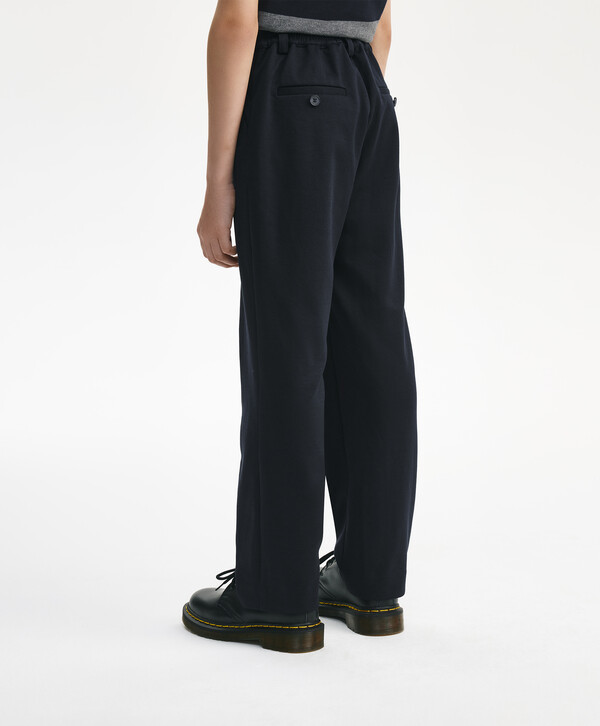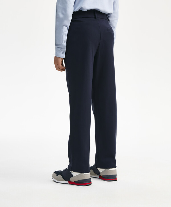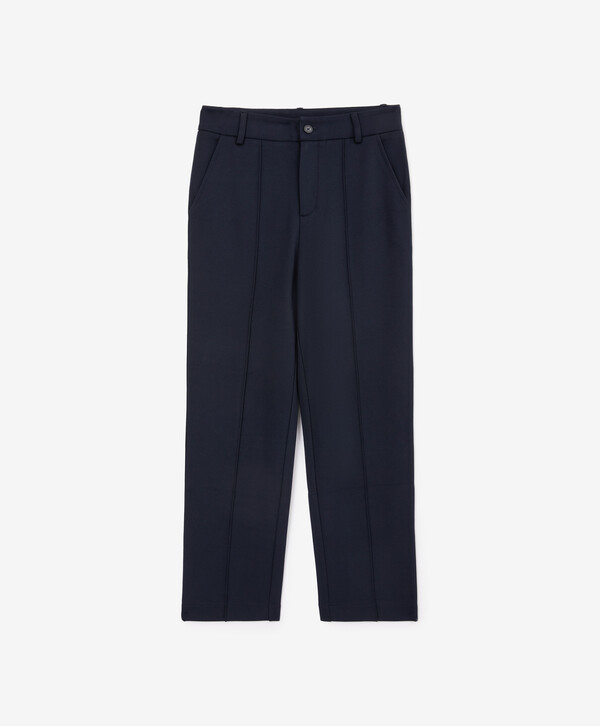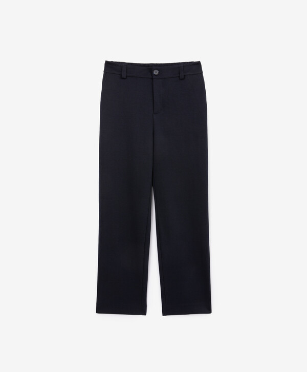 Синие трикотажные брюки – прекрасная альтернатива строгой классике! Брюки прямой формы выполнены из пластичного трикотажного полотна средней плотности, по внешнему виду и тактильным ощущениям максимал... Показать описаниеьно приближенного к текстилю. Они прекрасно держат форму и благодаря резинке на задней части пояса, очень комфортны в эксплуатации. Внутренняя часть брюк частично усилена шелковистой подкладкой. Брюки застегиваются на молнию и пуговицу, имеют удобные карманы со скосом, а также функциональные карманы-листочки на задних половинках. Синие школьные брюки легко комбинируются с рубашками и сорочками любого кроя, лонгсливами, джемперами, любыми изделиями из вязаного трикотажа и могут быть дополнены пиджаками и жилетам для создания образов, уместных на торжественных или официальных мероприятиях. верх 74% полиэстер,23% вискоза,3% эластан; подкладка 53% вискоза,47% полиэстер
