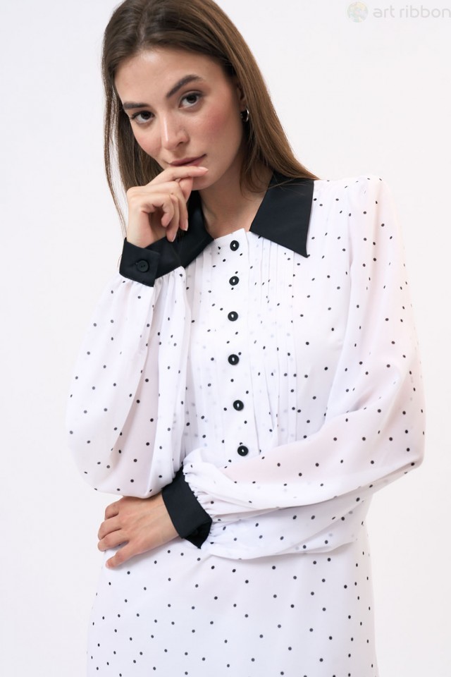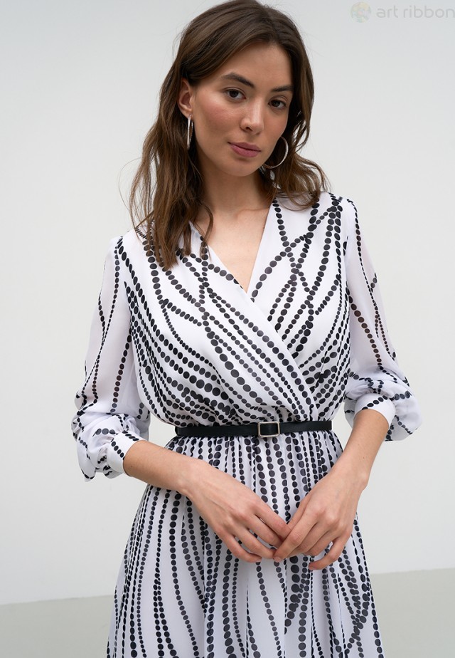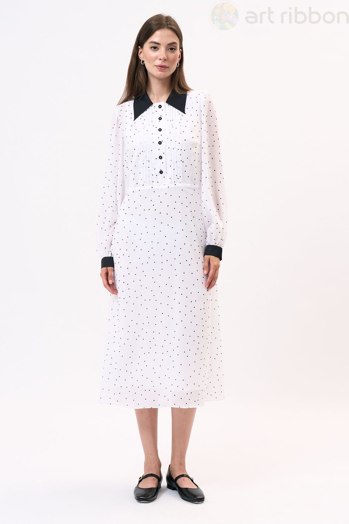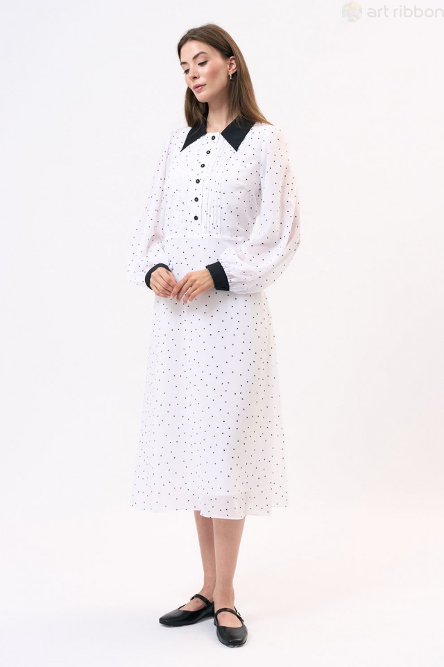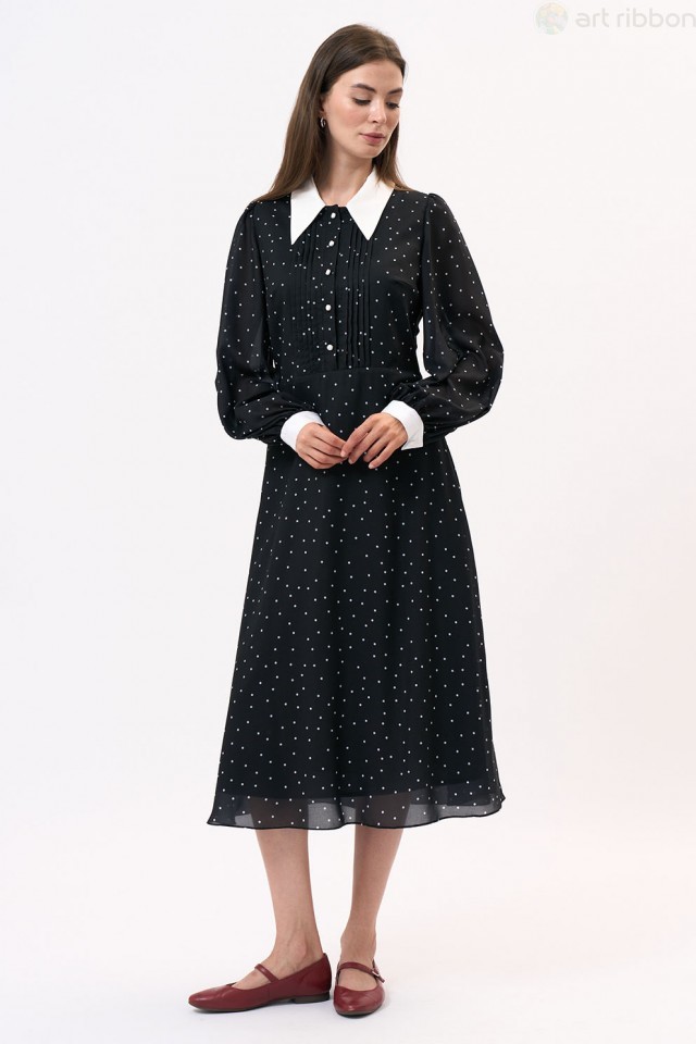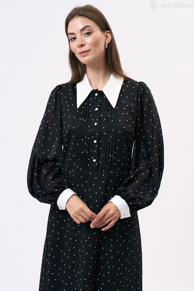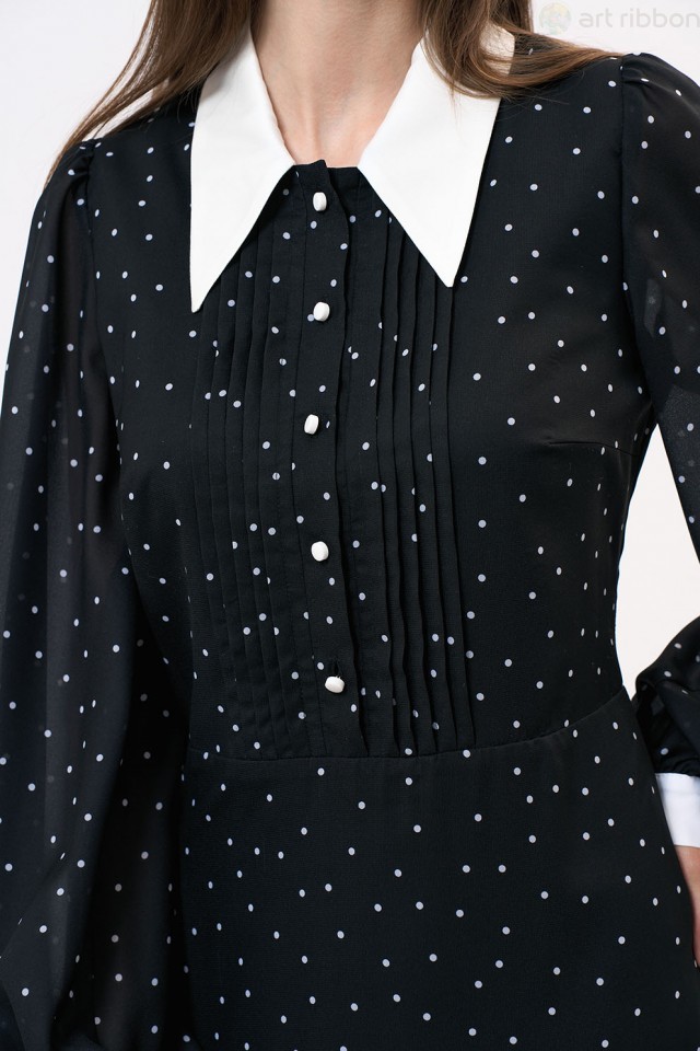 CHIFFON. Возможные размеры: 44-46-48-50. Шифоновое платье длиной миди сделает Ваш образ нежным и романтичным. Рукав длинный, втачной с манжетой. Платье отрезное по линии талии, с центральной застежкой... Показать описание на петли и пуговицы. Изделие на подкладке. Возможно отличие фотографии по оттенку, связанное с разной цветопередачей монитора. Состав ткани:Полиэстер: 100%. Длина по центру спинки (см): 118, 118, 118, 118. По груди (см): 48, 50, 52, 54. По талии (см): 41, 43, 45, 47. Длина рукава (см): 64, 64, 64, 64. Ширина рукава (см): 21.1, 21.8, 22.5, 23.2. Размер воротника (см): 21.5, 22, 22.5, 23. Ширина плеча (см): 9.4, 9.6, 9.8, 10. Ширина спинки (см): 33, 34, 35, 36. Подробное описание: https://artribbon.ru/m1046p-1-plat-e-zhenskoe.html