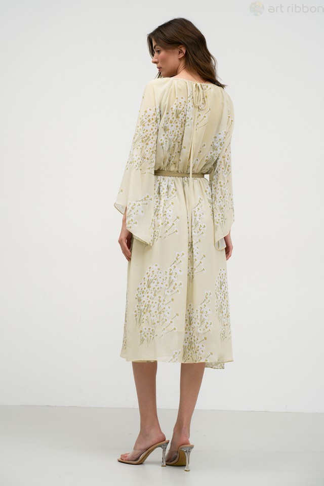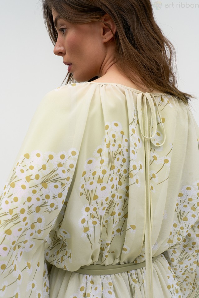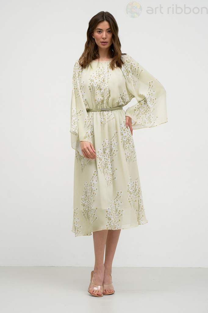 CHIFFON. Возможные размеры: 44-46-48-50-52-54. Летящее и легкое шифоновое платье с нежным принтом придаст Вашему образу романтичное настроение. Платье свободного силуэта, длиной миди, на шифоновой под... Показать описаниекладке. Горловина присборена, круглой формы. Рукав -реглан, свободного кроя, с ассиметричным нижним срезом. Талия присборена на эластичную тесьму. Изделие на подкладке, комплекте с ремнем. Возможно отличие фотографии по оттенку, связанное с разной цветопередачей монитора. Состав ткани:Полиэстер: 100%. Длина по центру спинки (см): 118, 118, 118, 118, 118, 118. По груди (см): 63, 65, 67, 69, 71, 73. Длина рукава (см): 57, 57, 57, 57, 57, 57. Ширина рукава (см): 26.4, 27.1, 27.8, 28.5, 29.2, 29.9. Подробное описание: https://artribbon.ru/m1008p-plat-e-zhenskoe.html